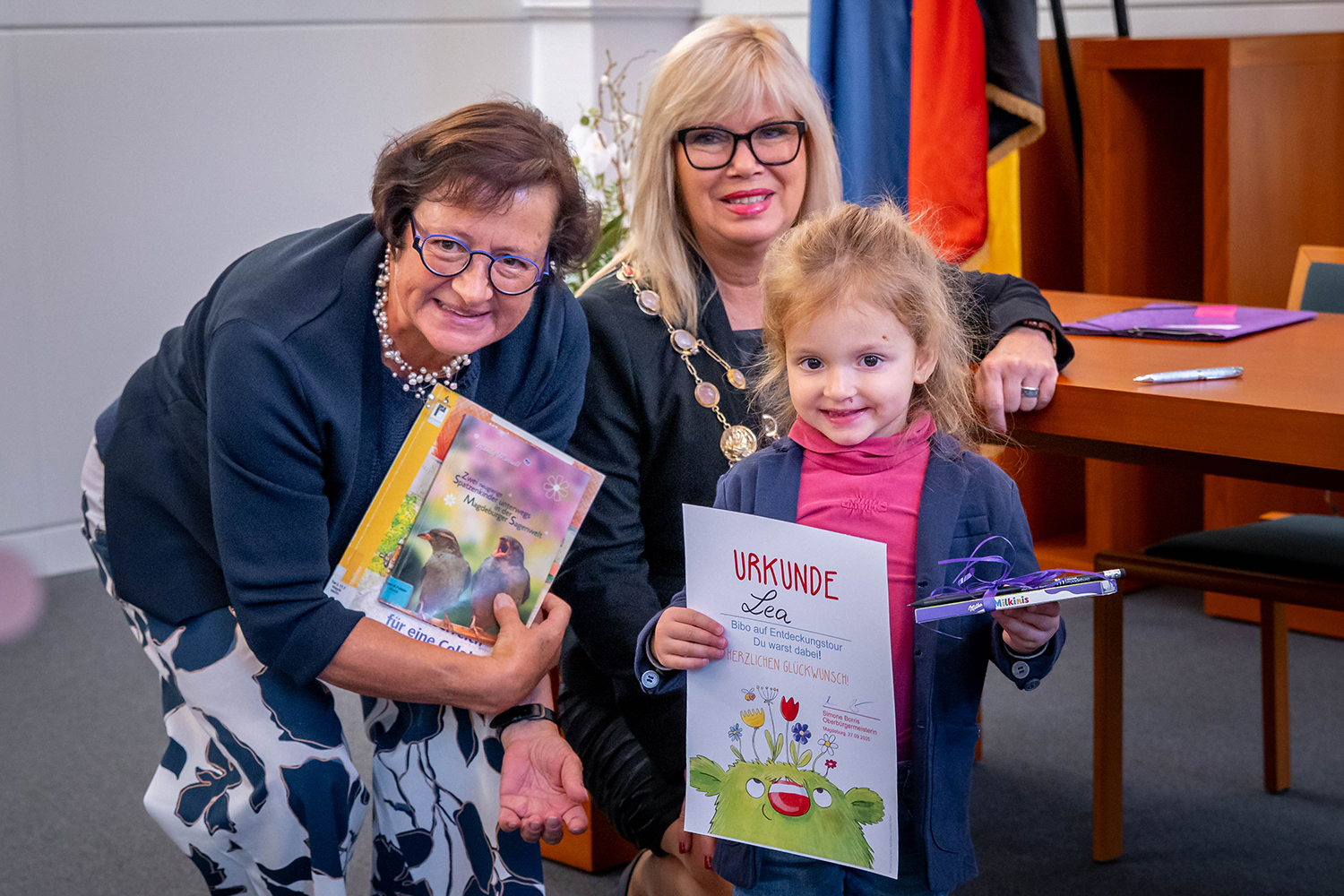 Oberbürgermeisterin Simone Borris lud Kinder im Rahmen der Jubiläumsaktion „Mit der Bibo auf Entdeckungstour“ im Eike-von-Repgow-Saal zu einer Lesestunde ein. Bei dieser Vorlesereihe entdeckten Kinder geheimnisvolle und ungewöhnliche Orte ihrer Heimatstadt.