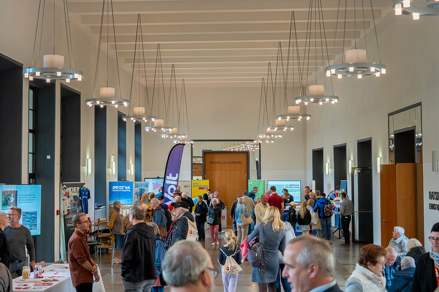 In den Räumen des Alten Rathauses stellten sich die Stadtratsfraktionen sowie der Bereich Bürgerbeteiligung vor. Auch der Balkon war an diesem Tag für alle zugänglich. Der Eigenbetrieb Stadtgarten und Friedhöfe bot Baumführungen im Martin-Luther-Hain mit qualifizierten Baumkontrollen an.