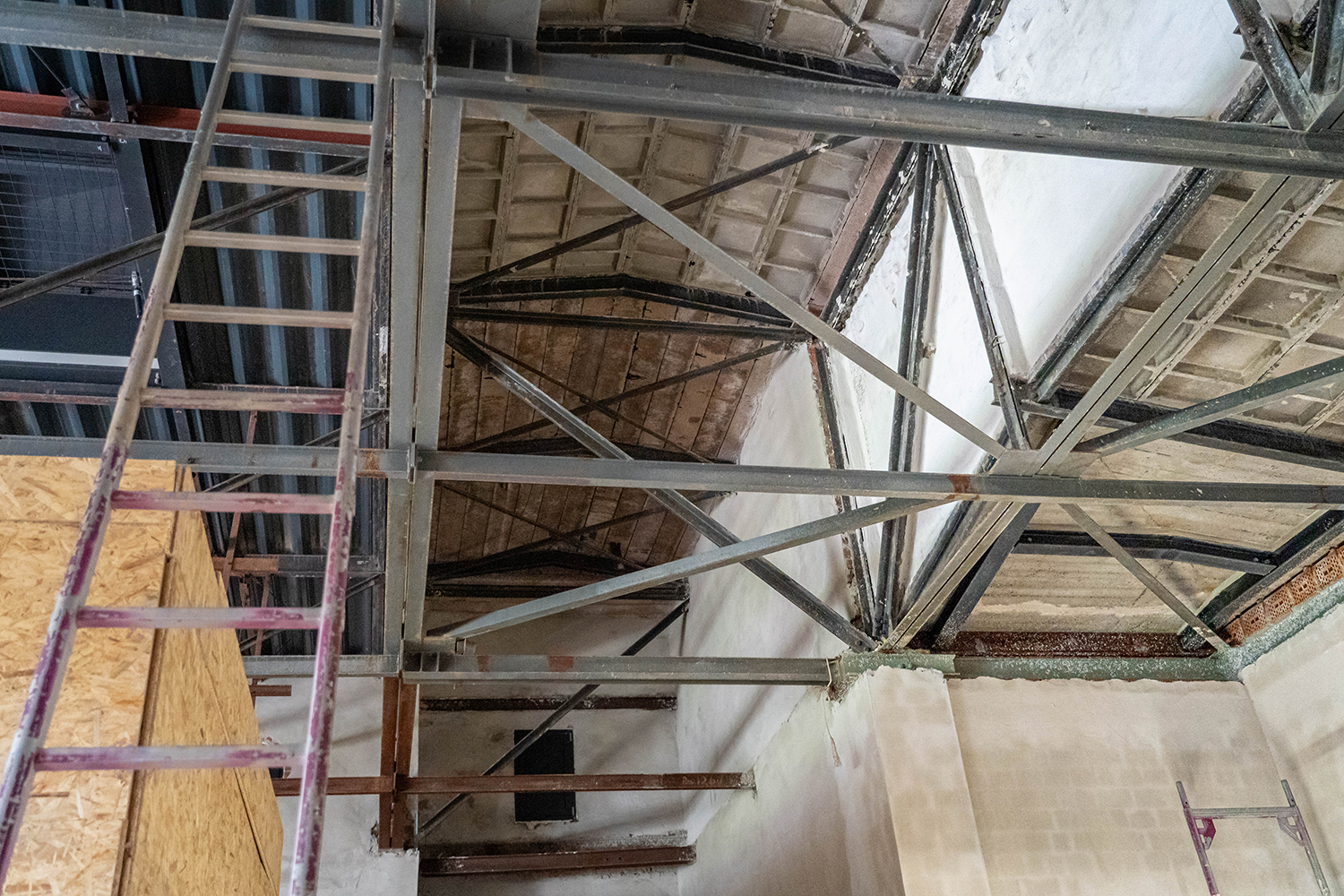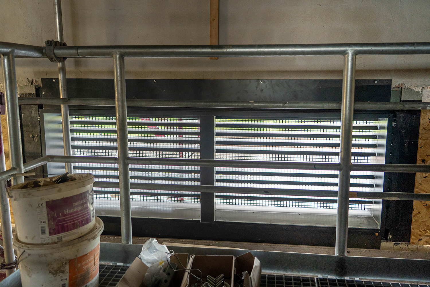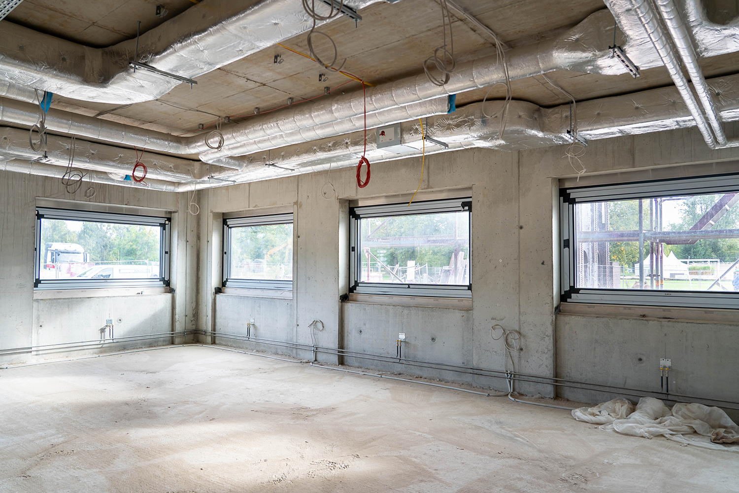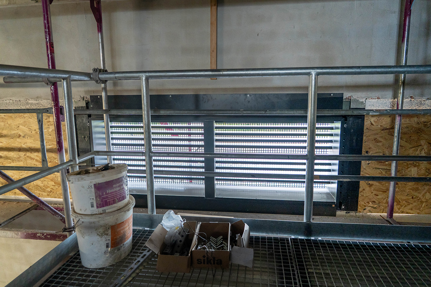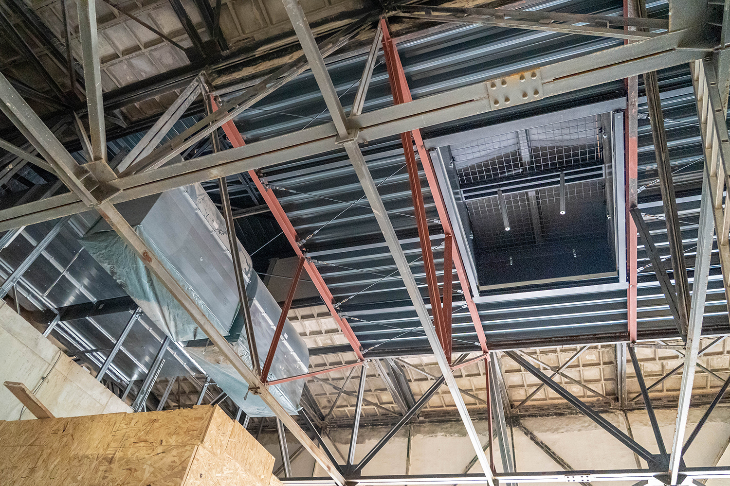 Einbau der Glaselemente für das Lichtband im Dach im März 2022