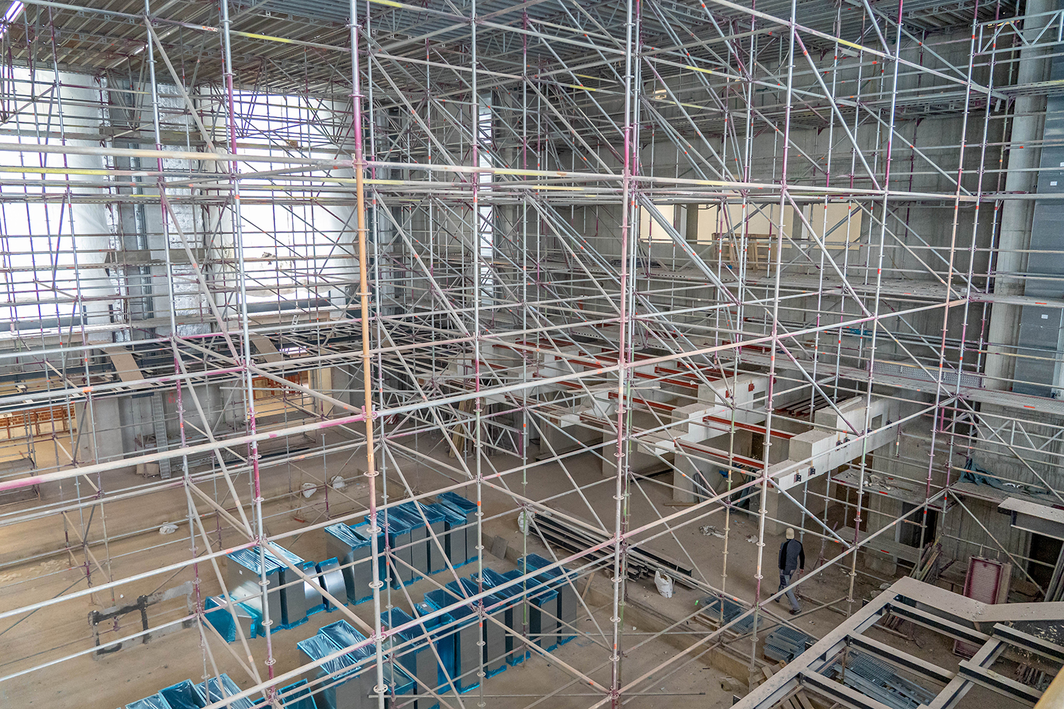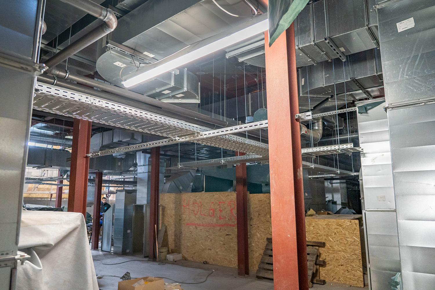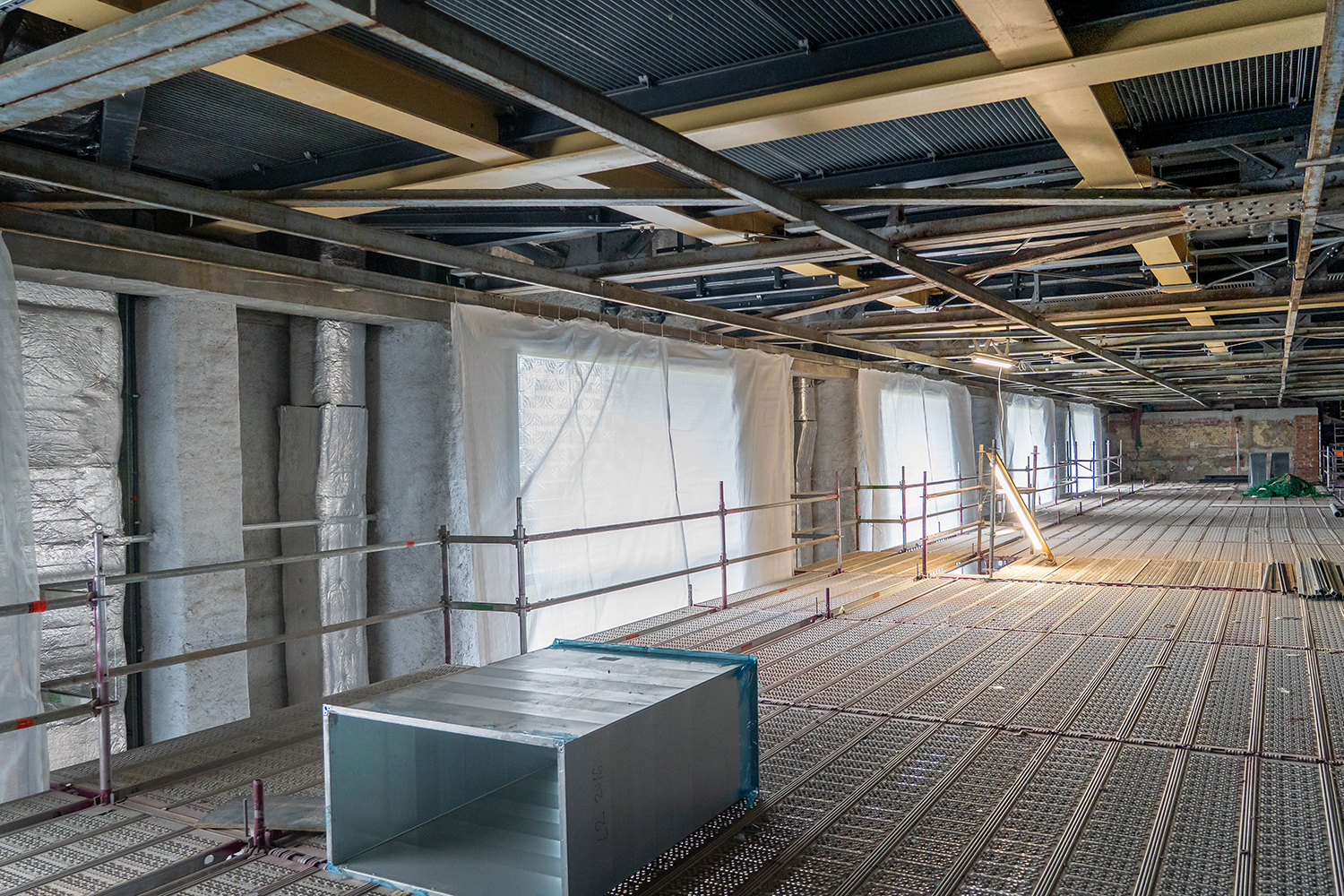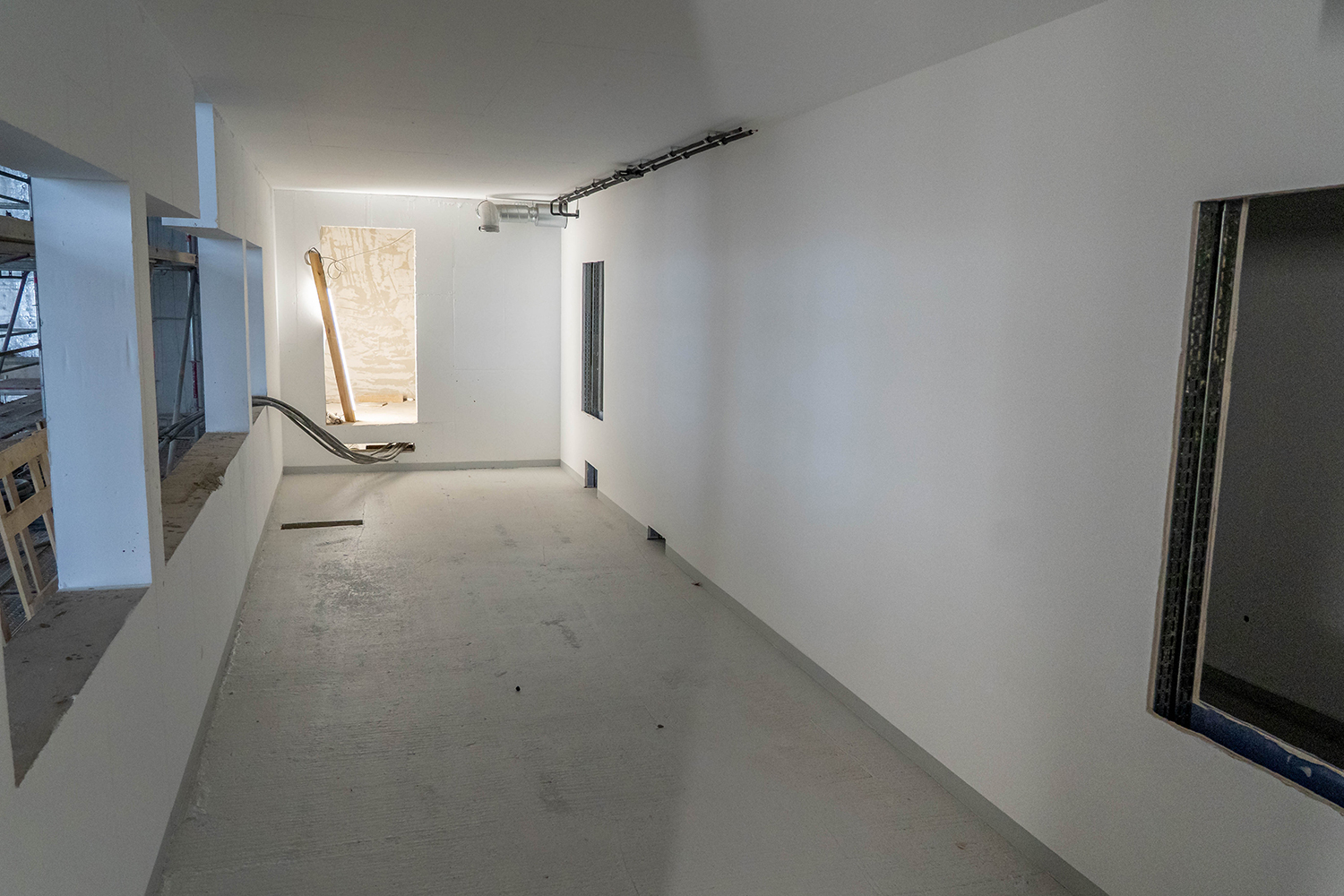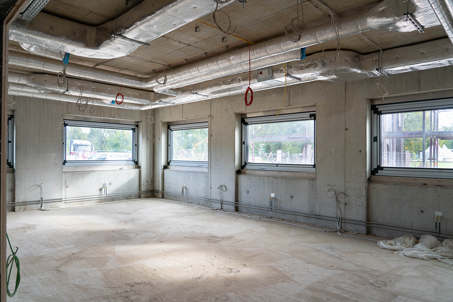 Einbau der Glaselemente für das Lichtband im Dach im März 2022