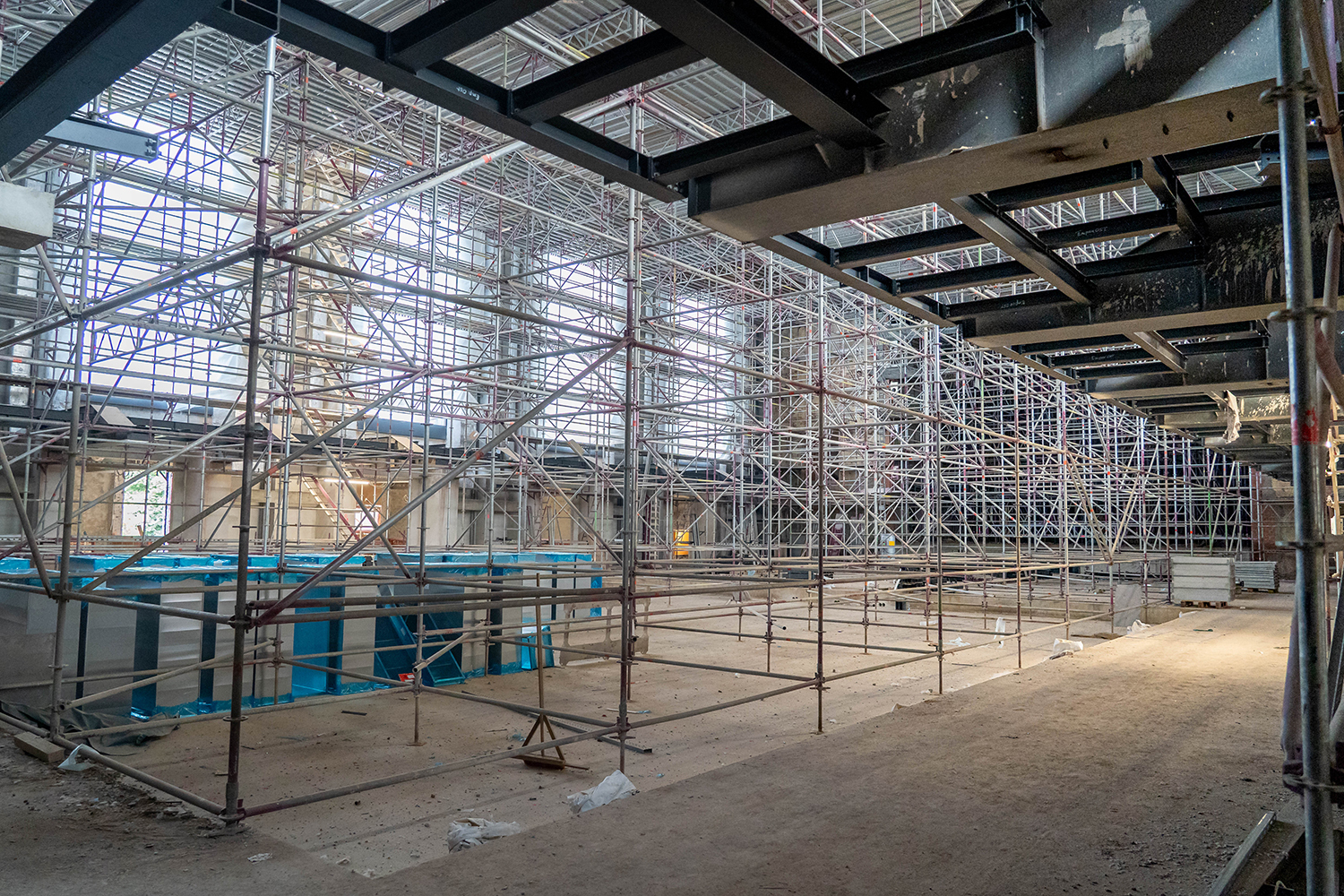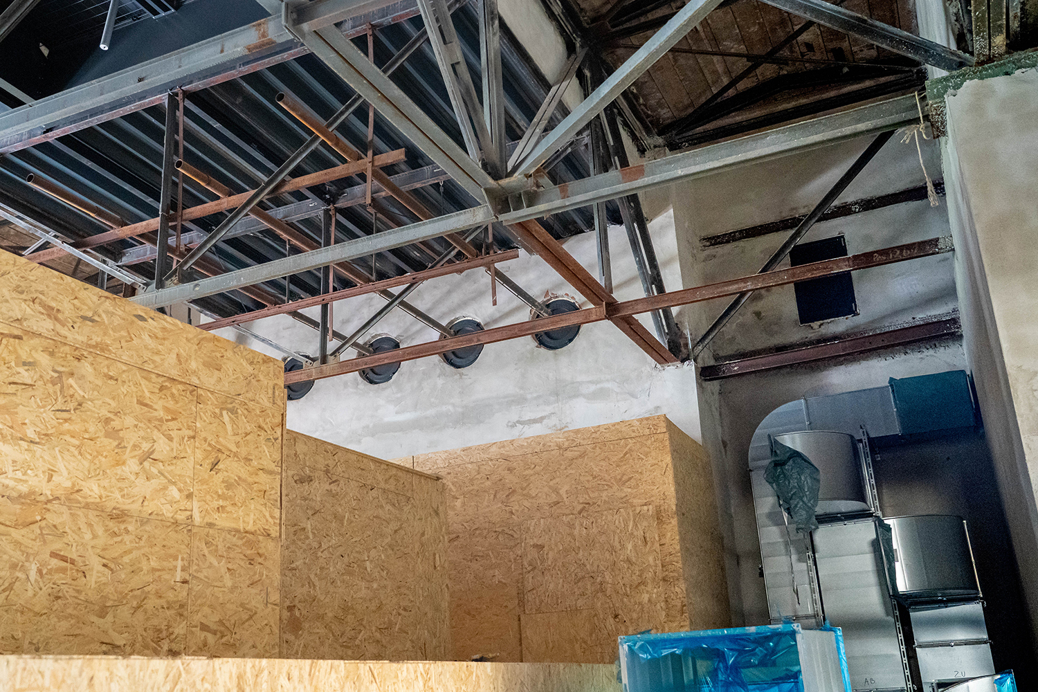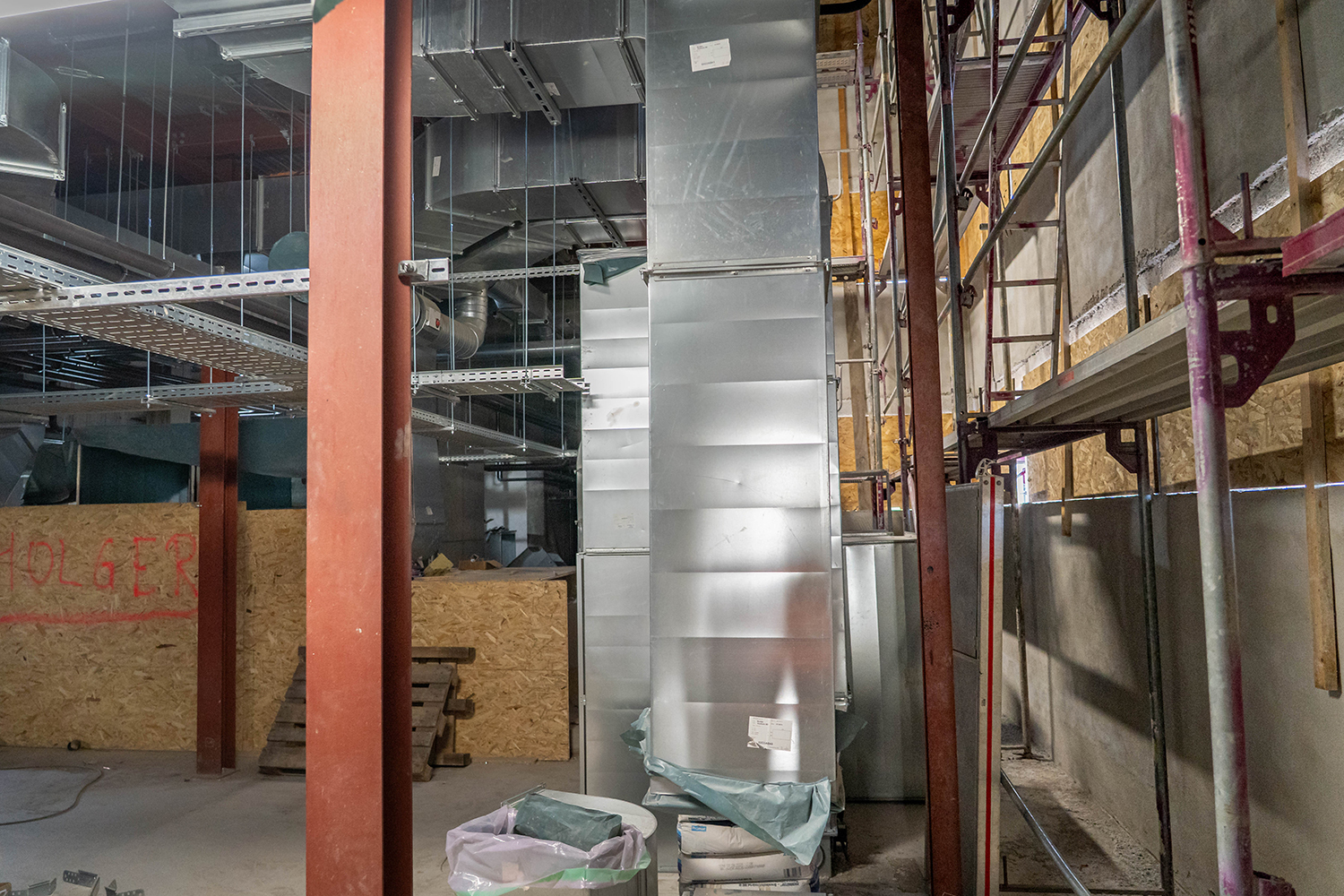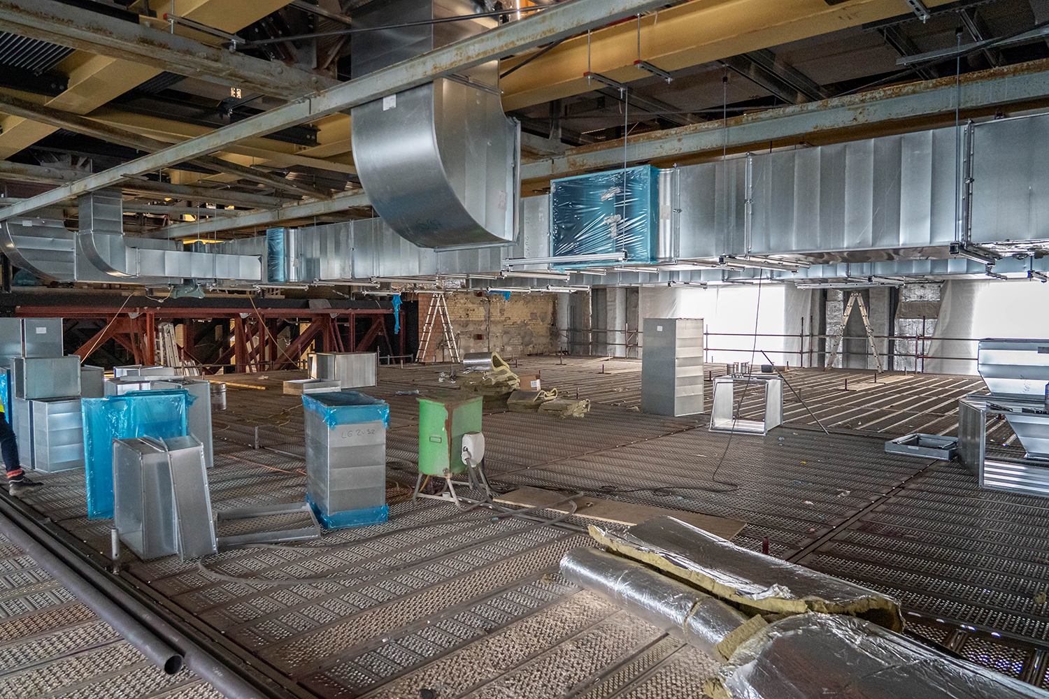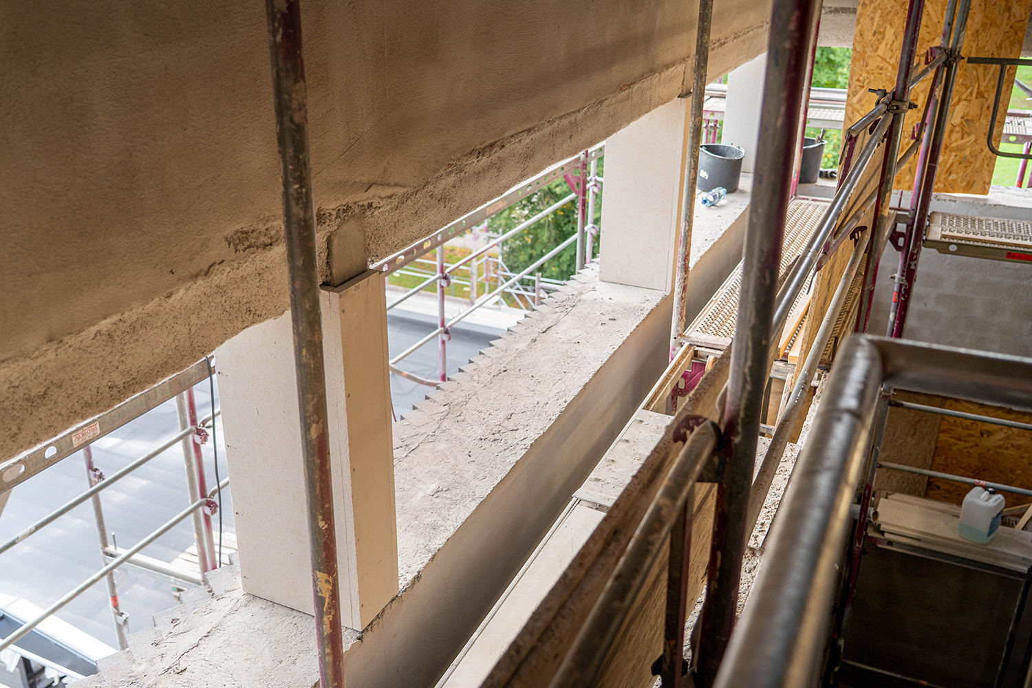 Einbau der Glaselemente für das Lichtband im Dach im März 2022