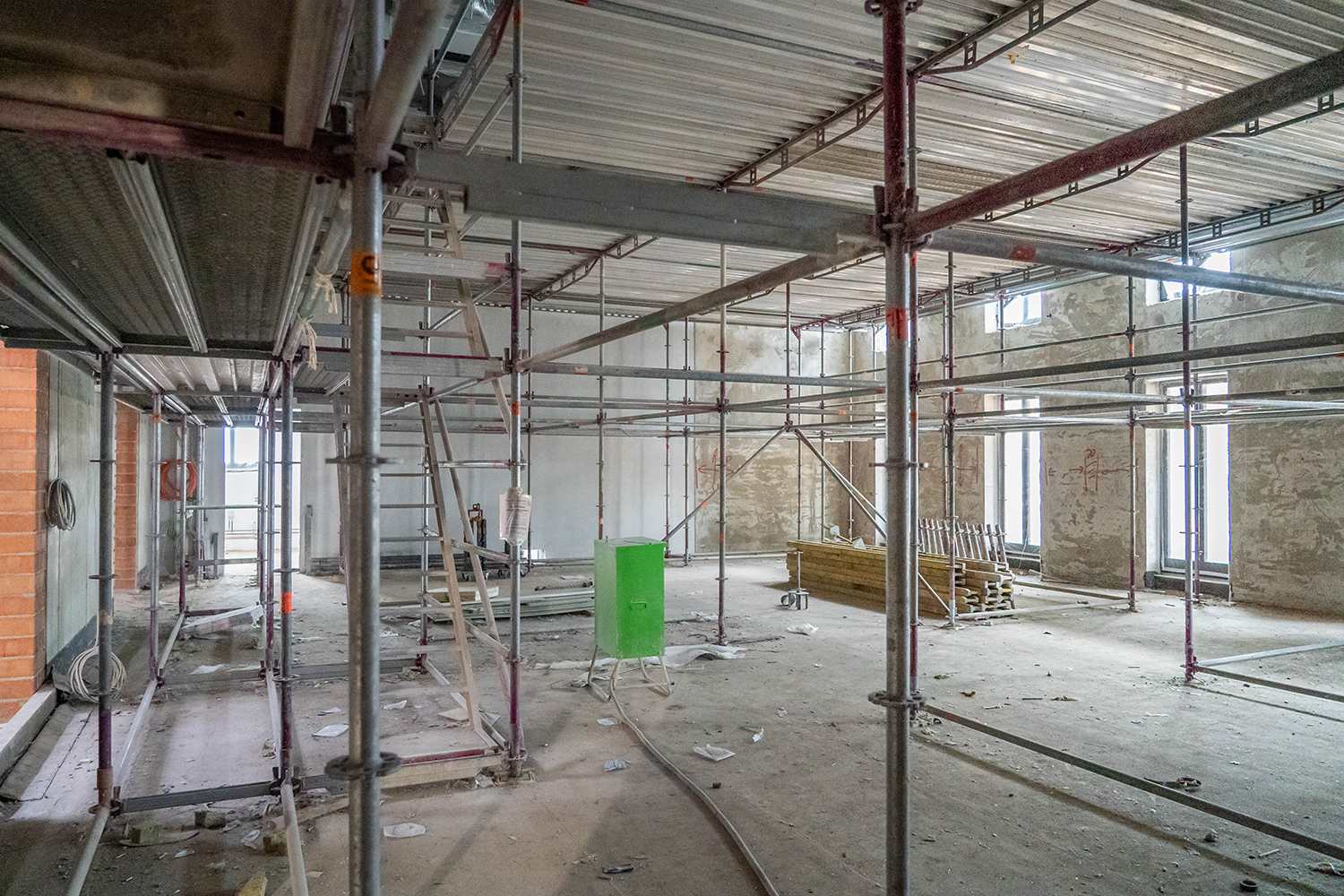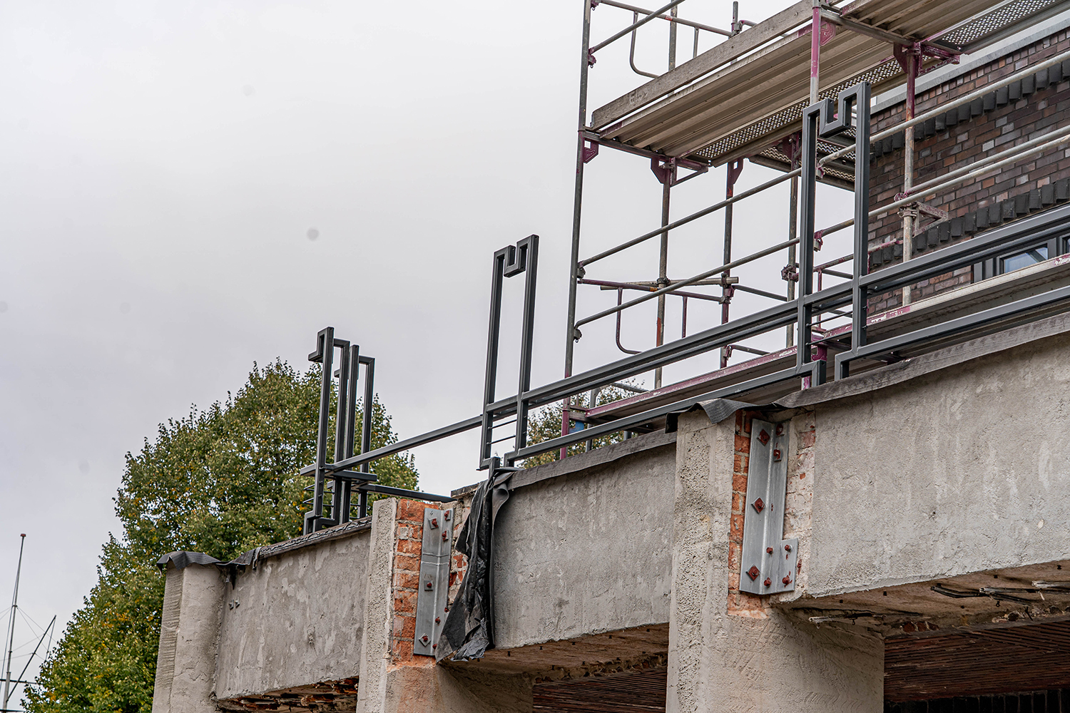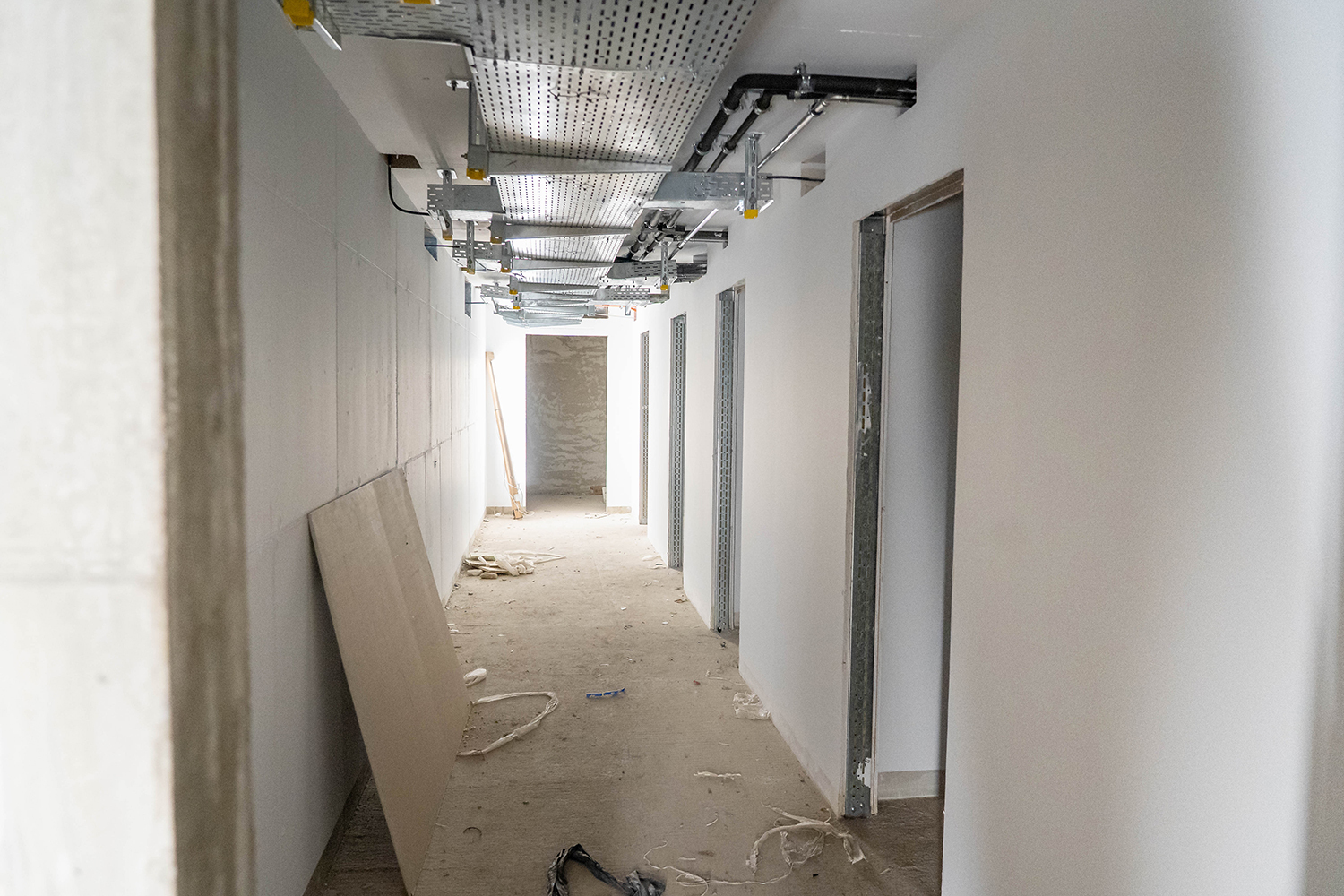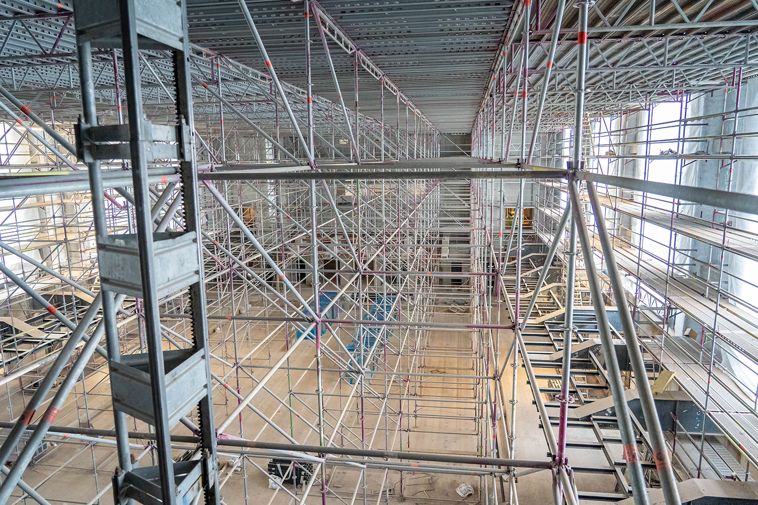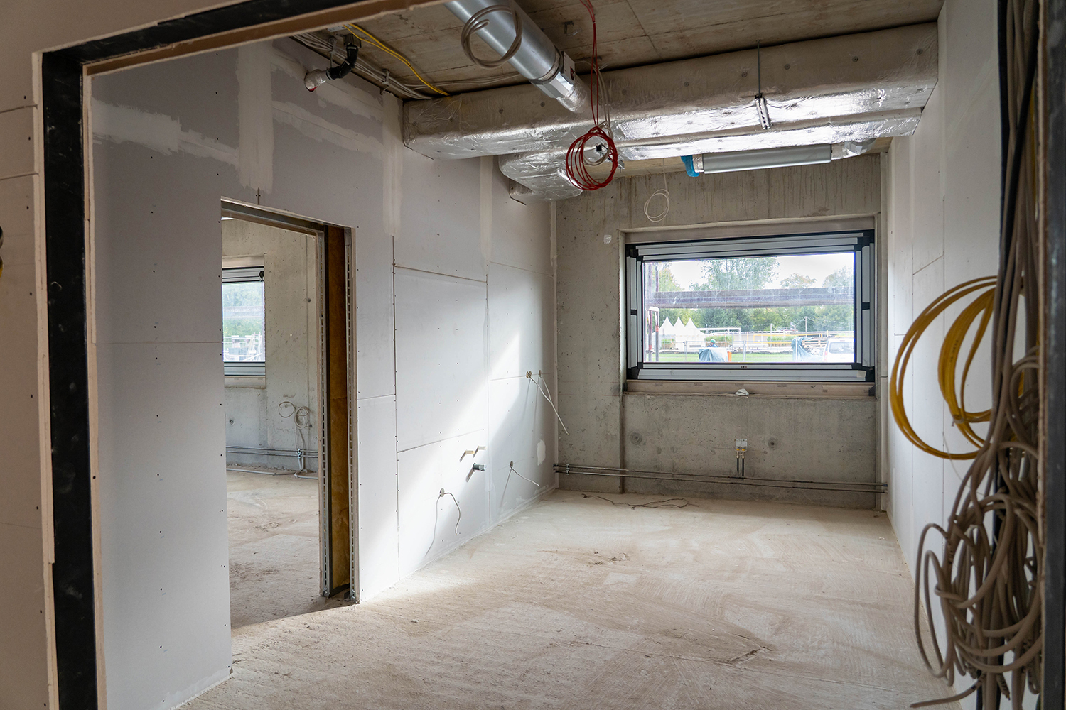 Einbau der Glaselemente für das Lichtband im Dach im März 2022