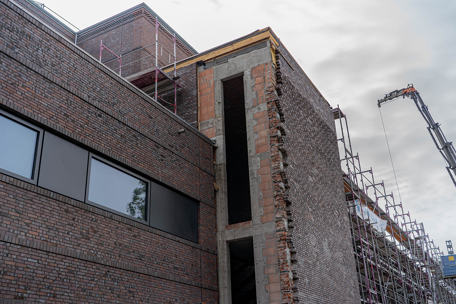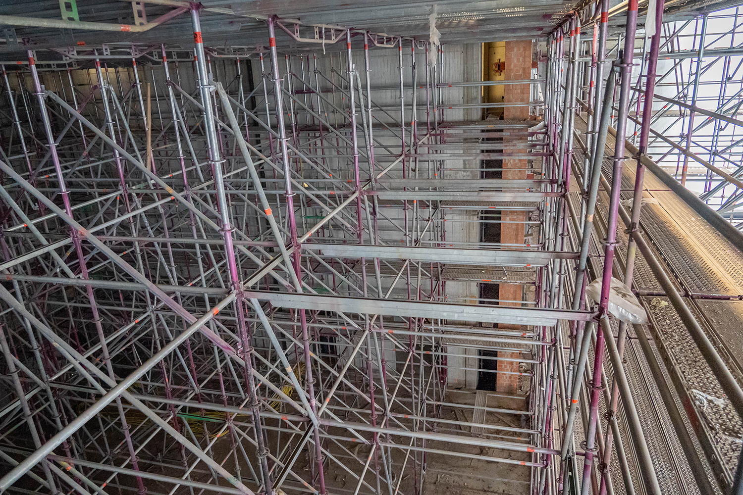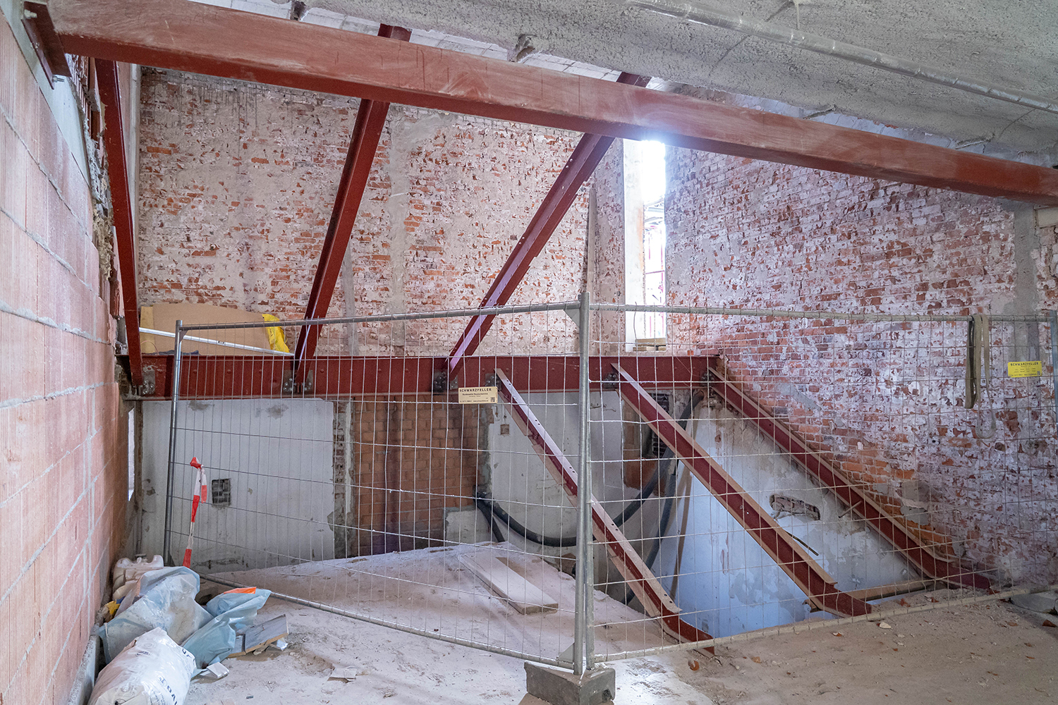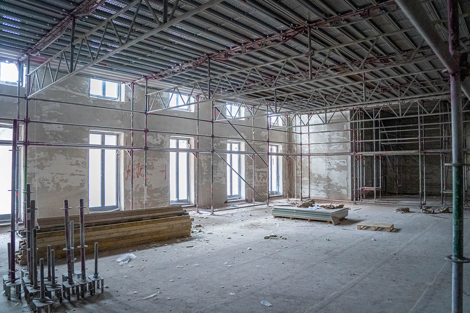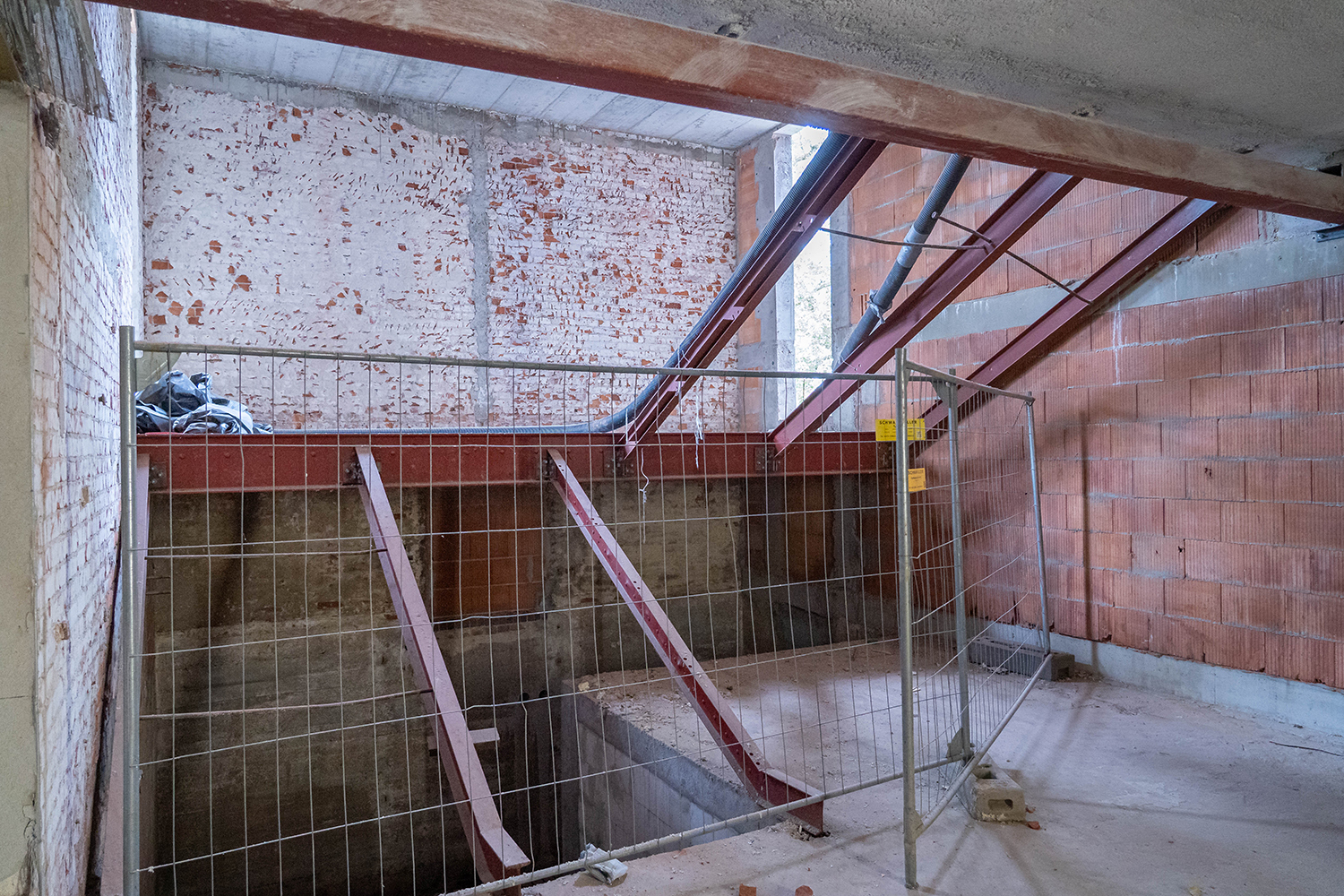 Einbau der Glaselemente für das Lichtband im Dach im März 2022