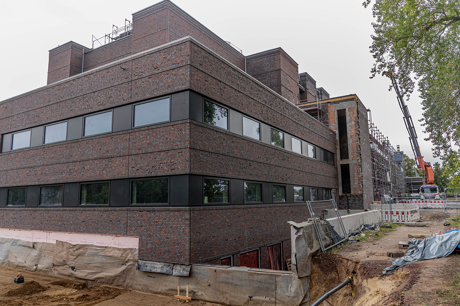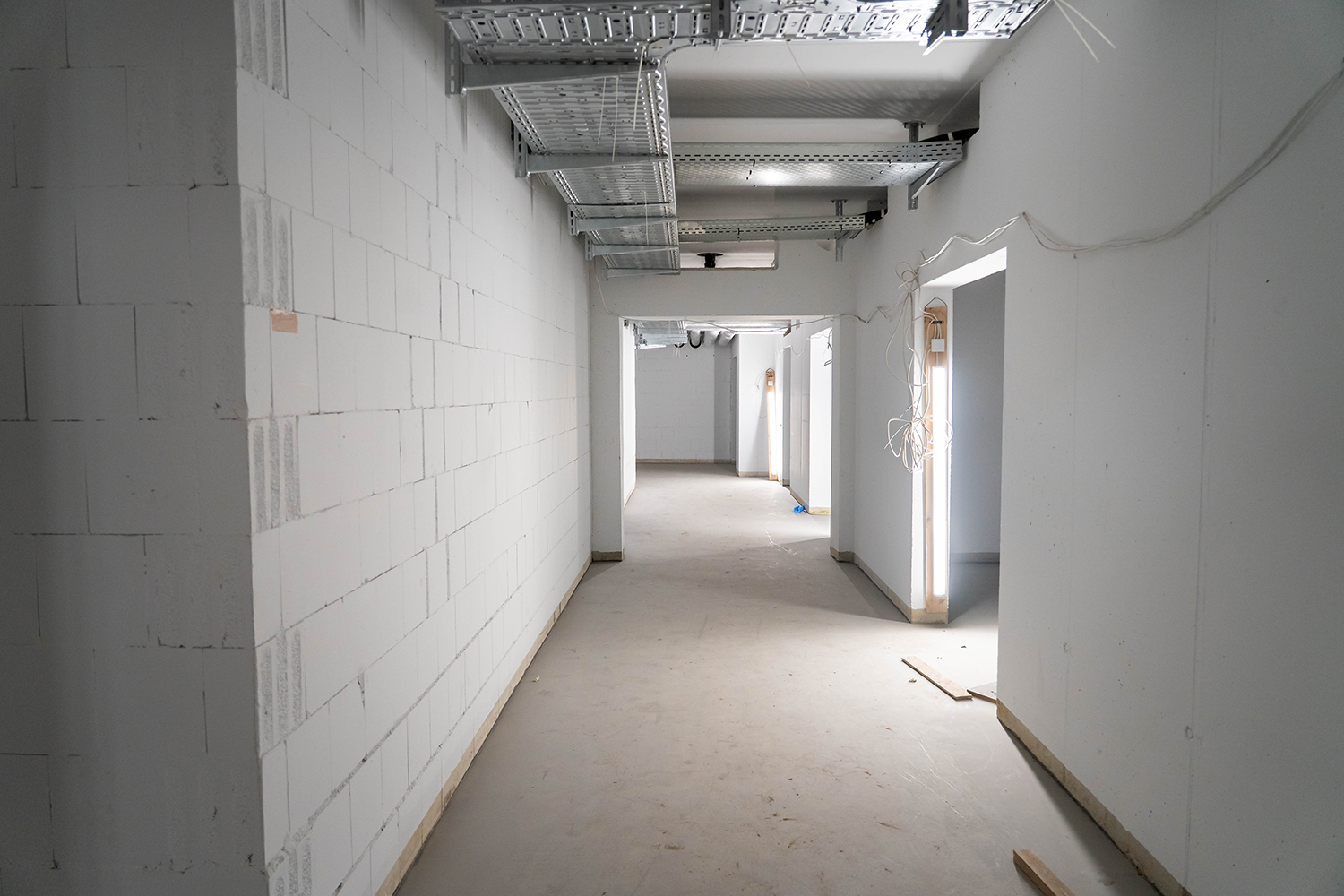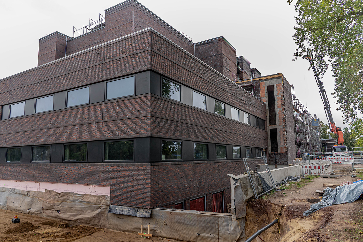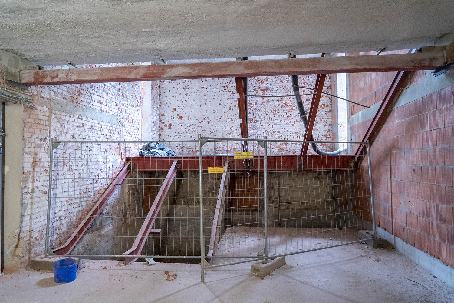 Einbau der Glaselemente für das Lichtband im Dach im März 2022