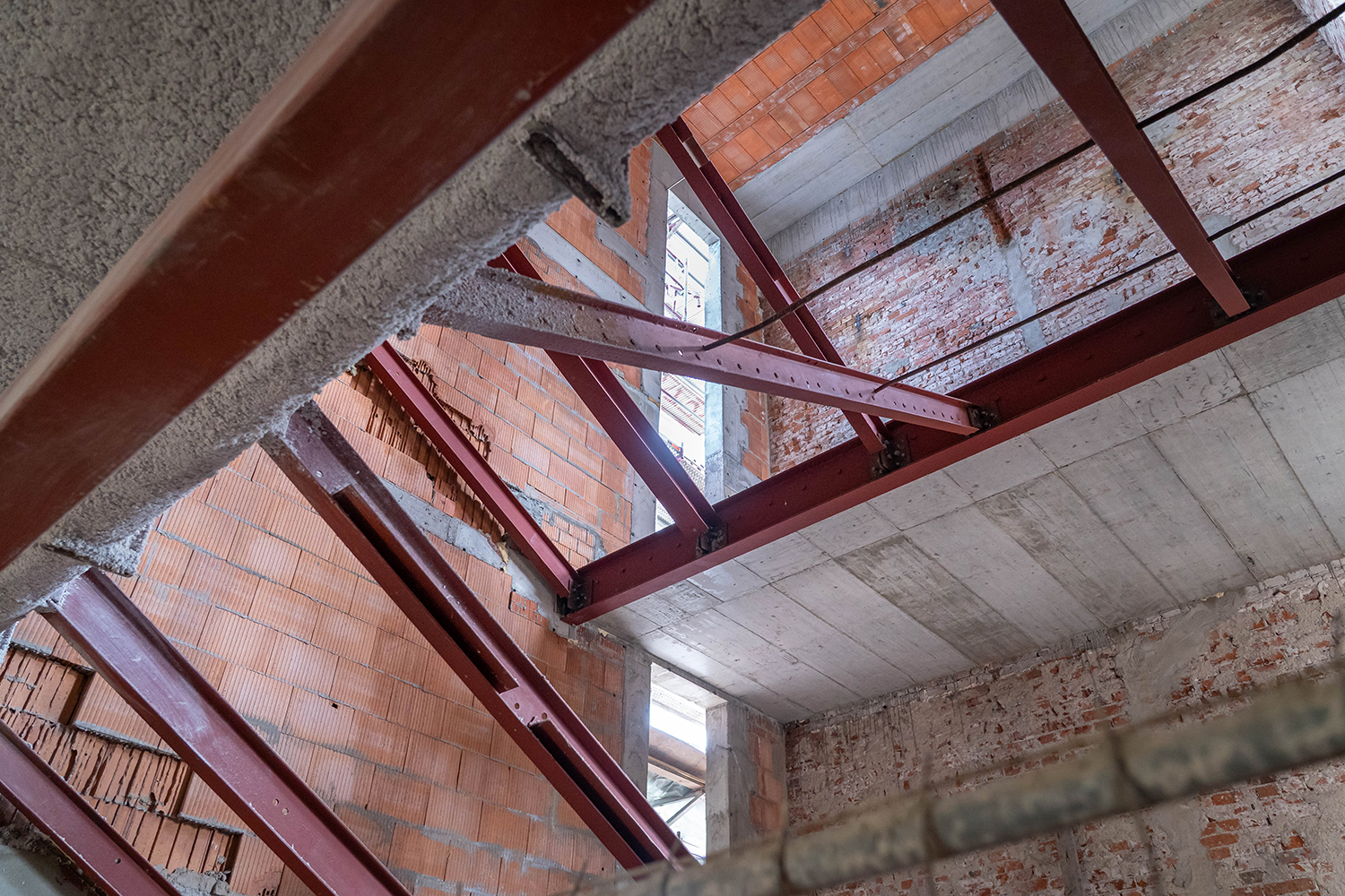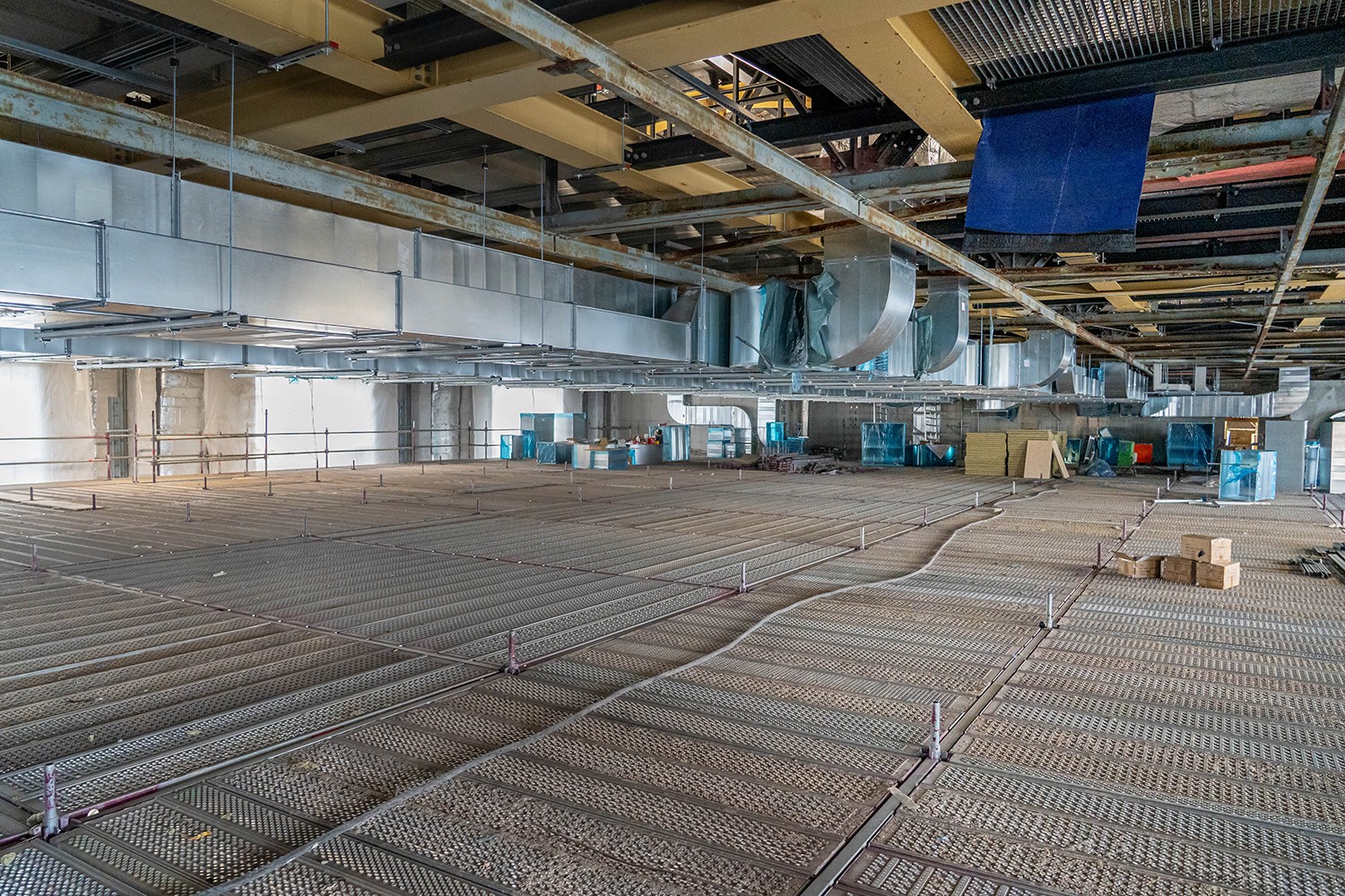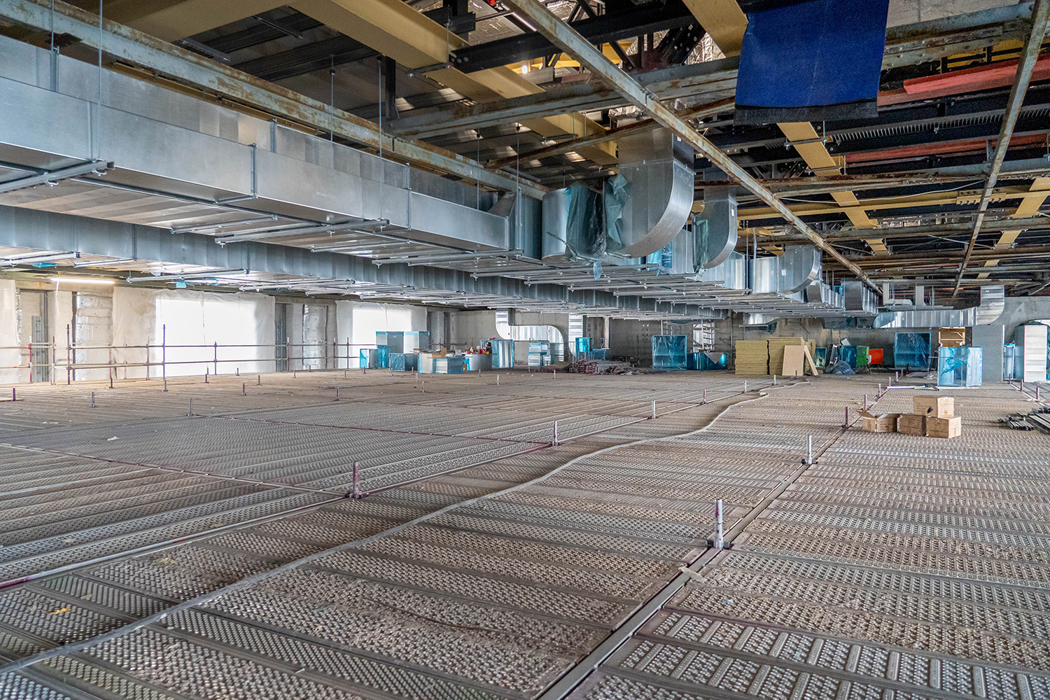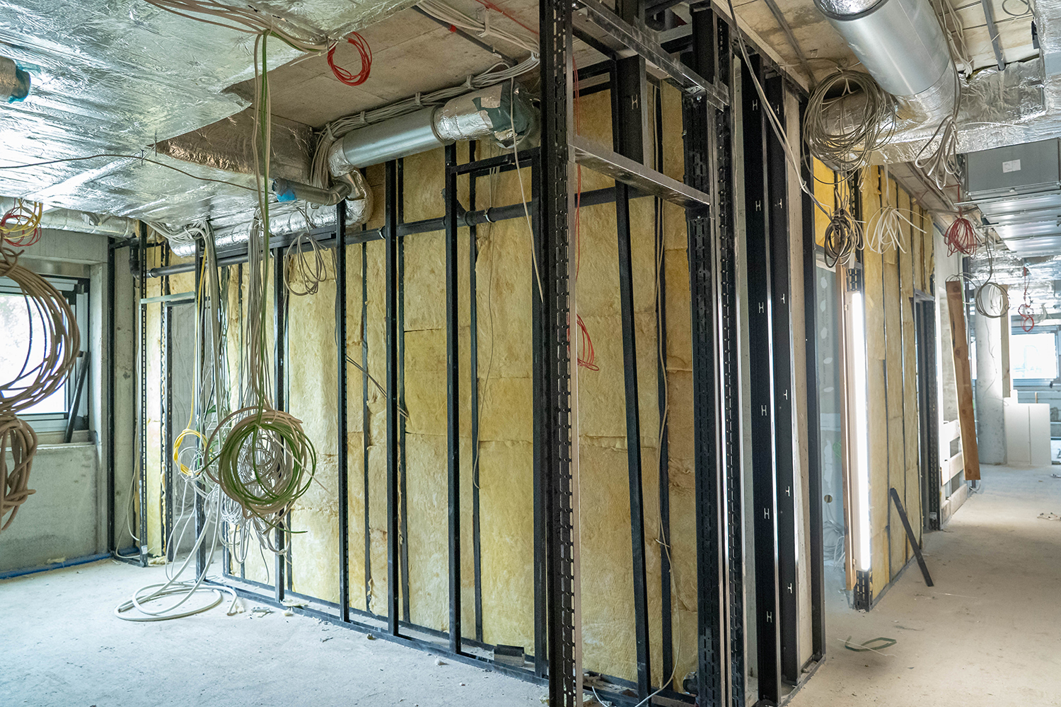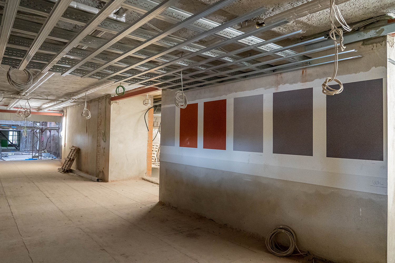 Einbau der Glaselemente für das Lichtband im Dach im März 2022
