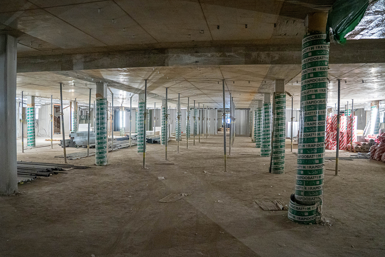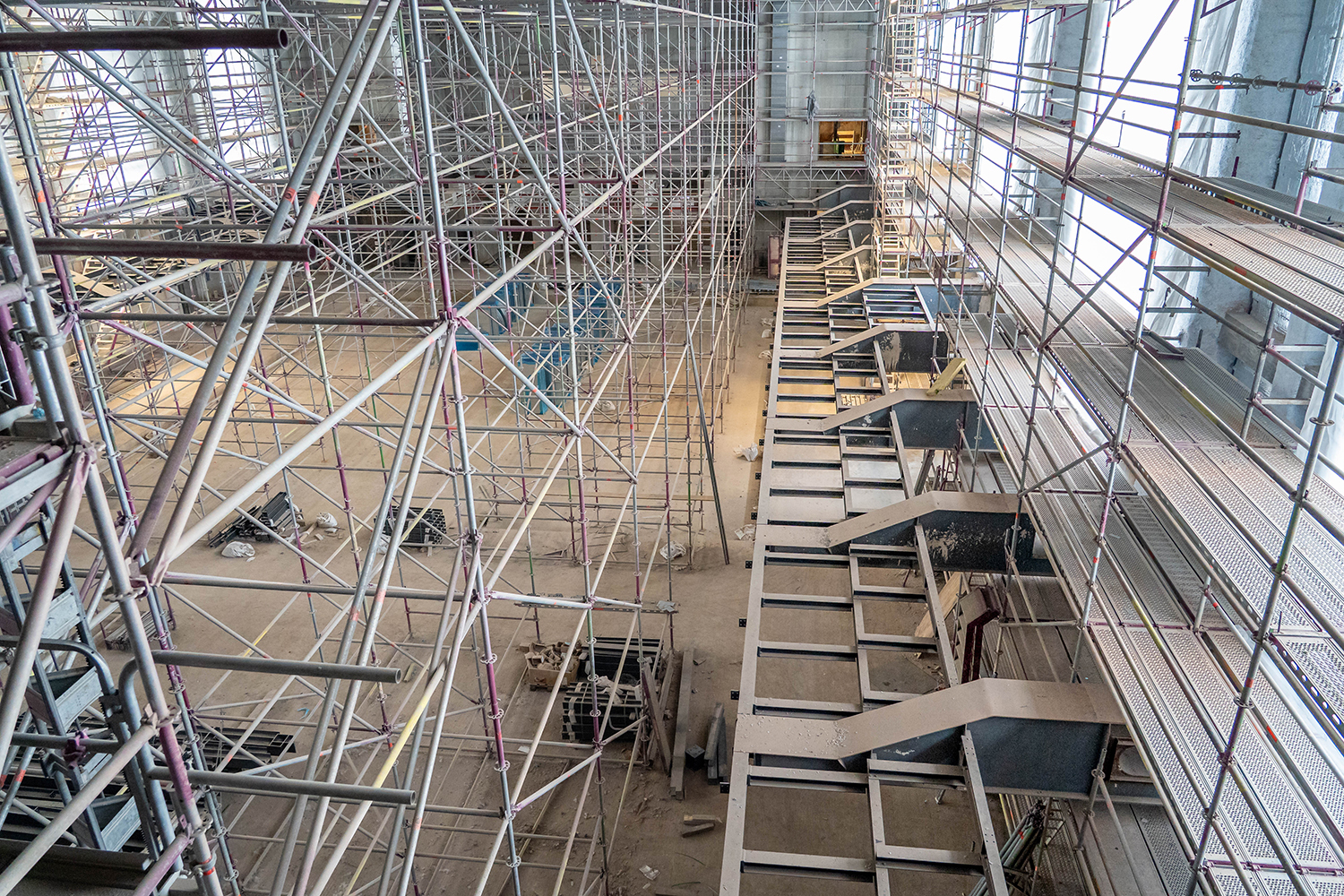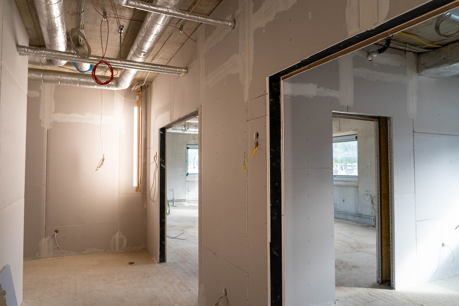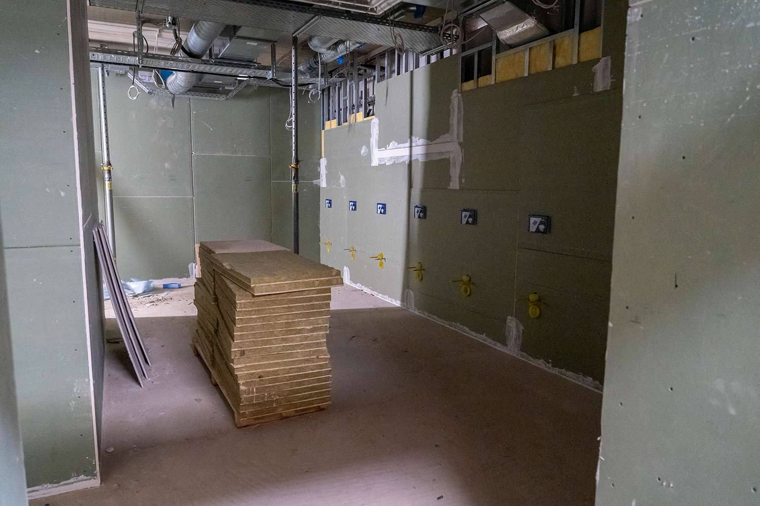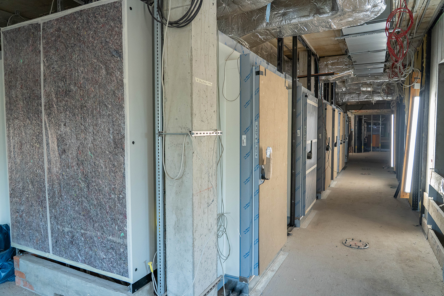 Einbau der Glaselemente für das Lichtband im Dach im März 2022