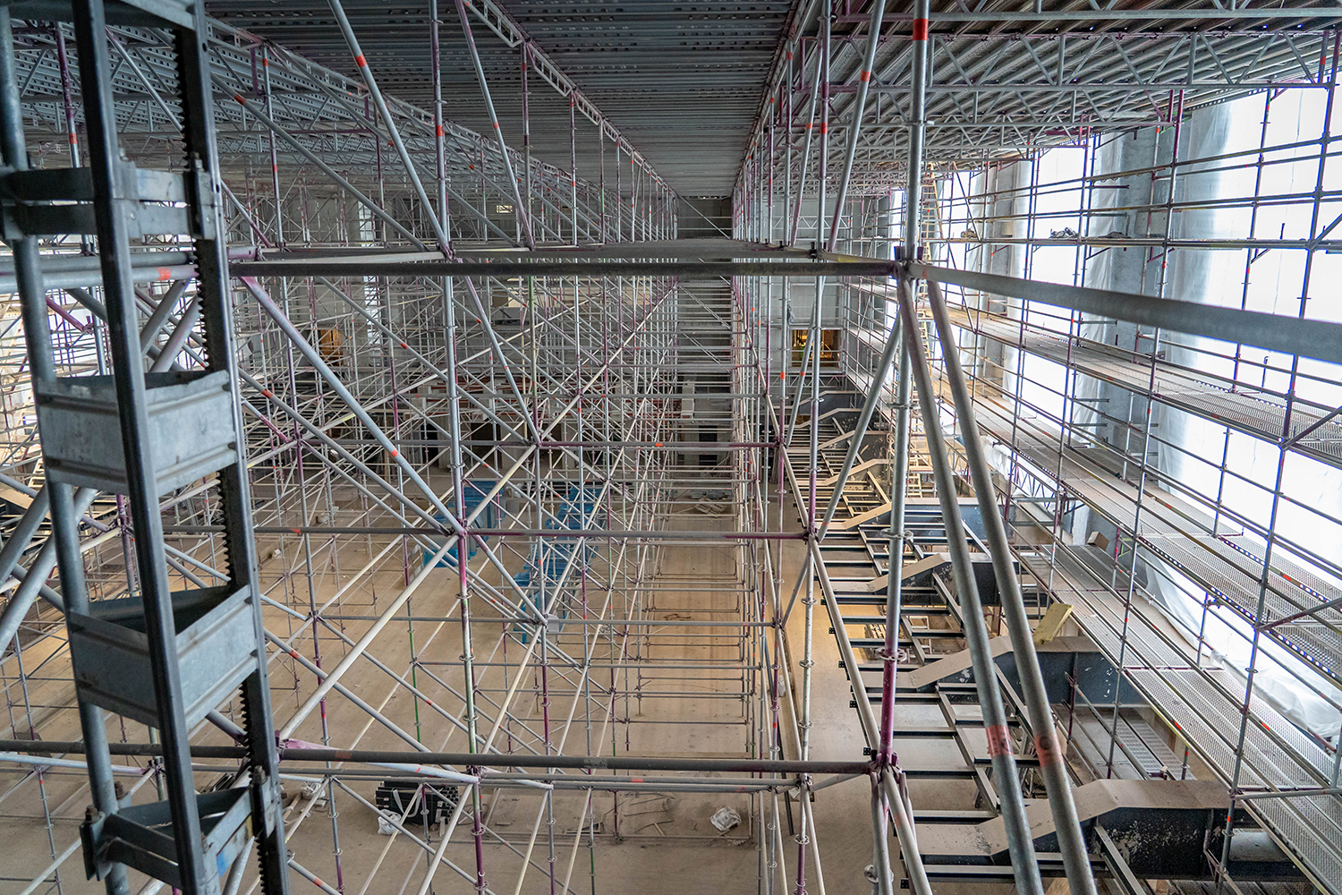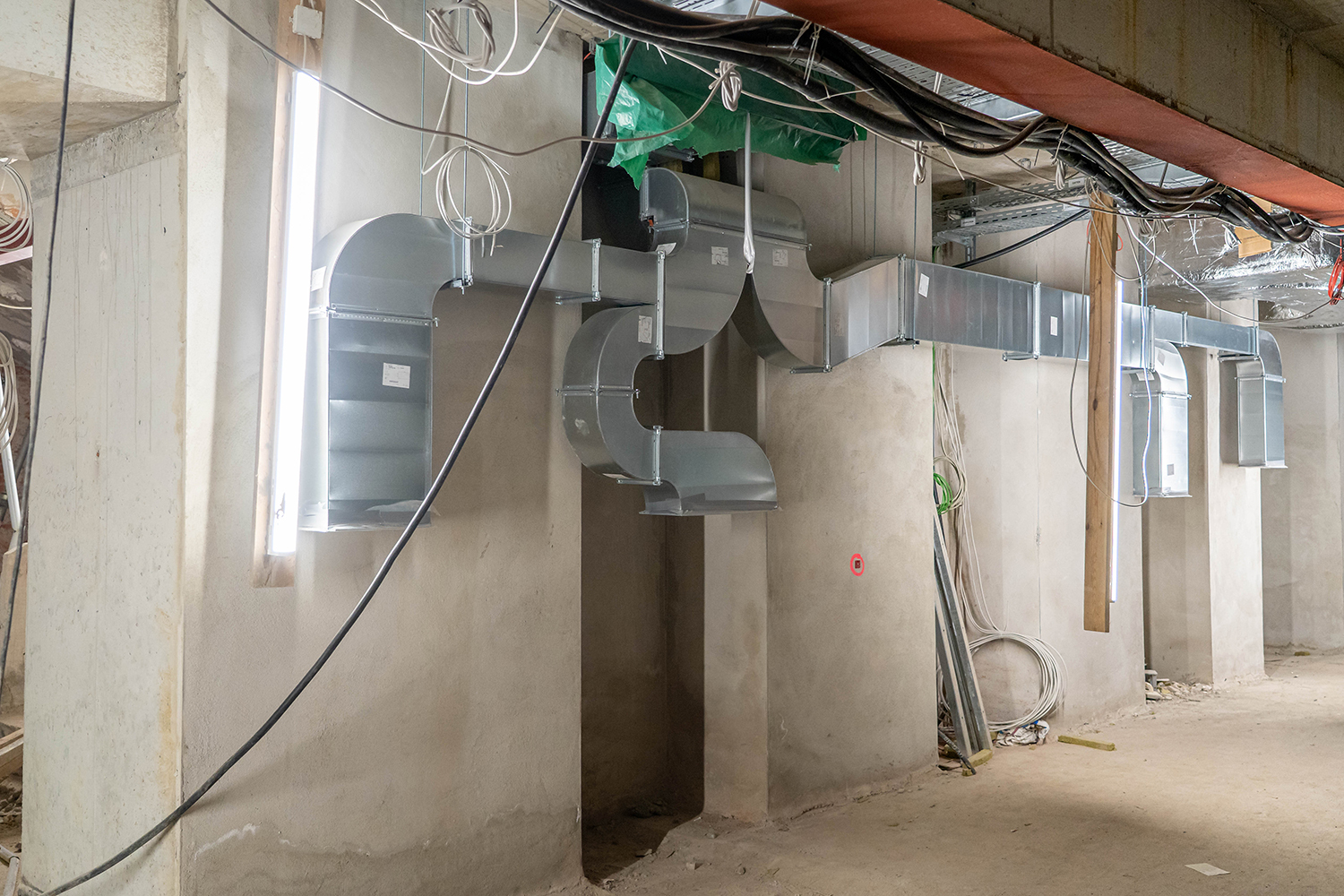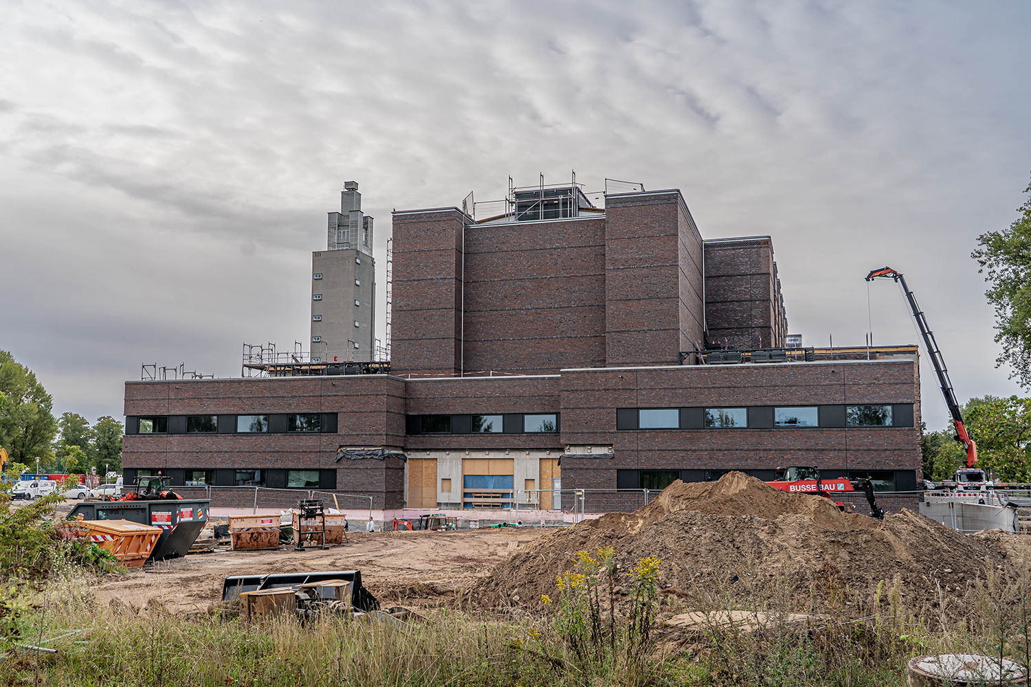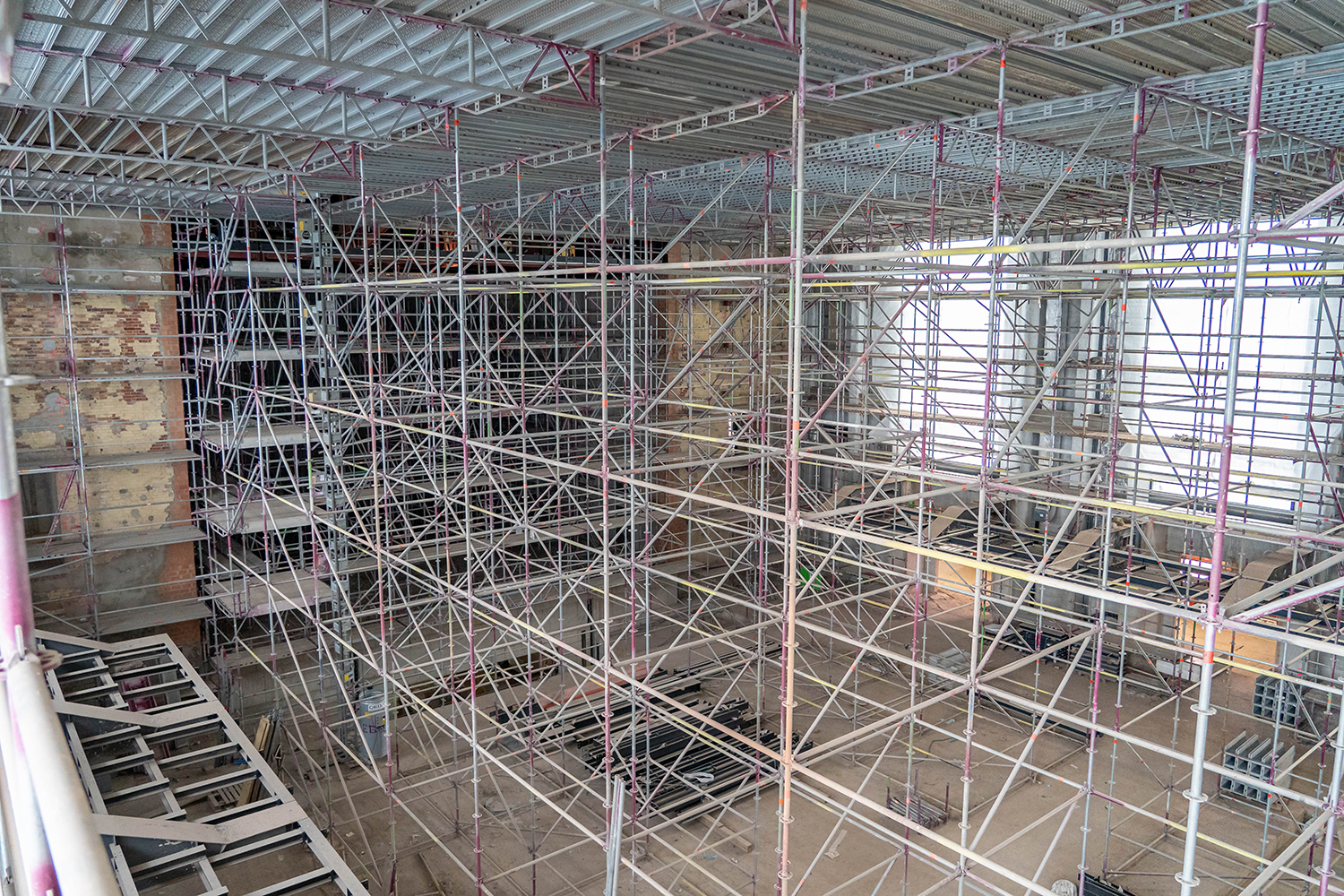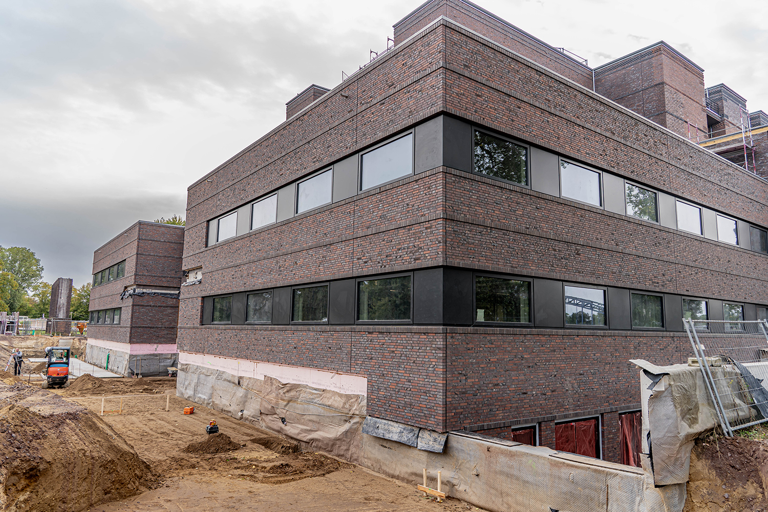 Einbau der Glaselemente für das Lichtband im Dach im März 2022
