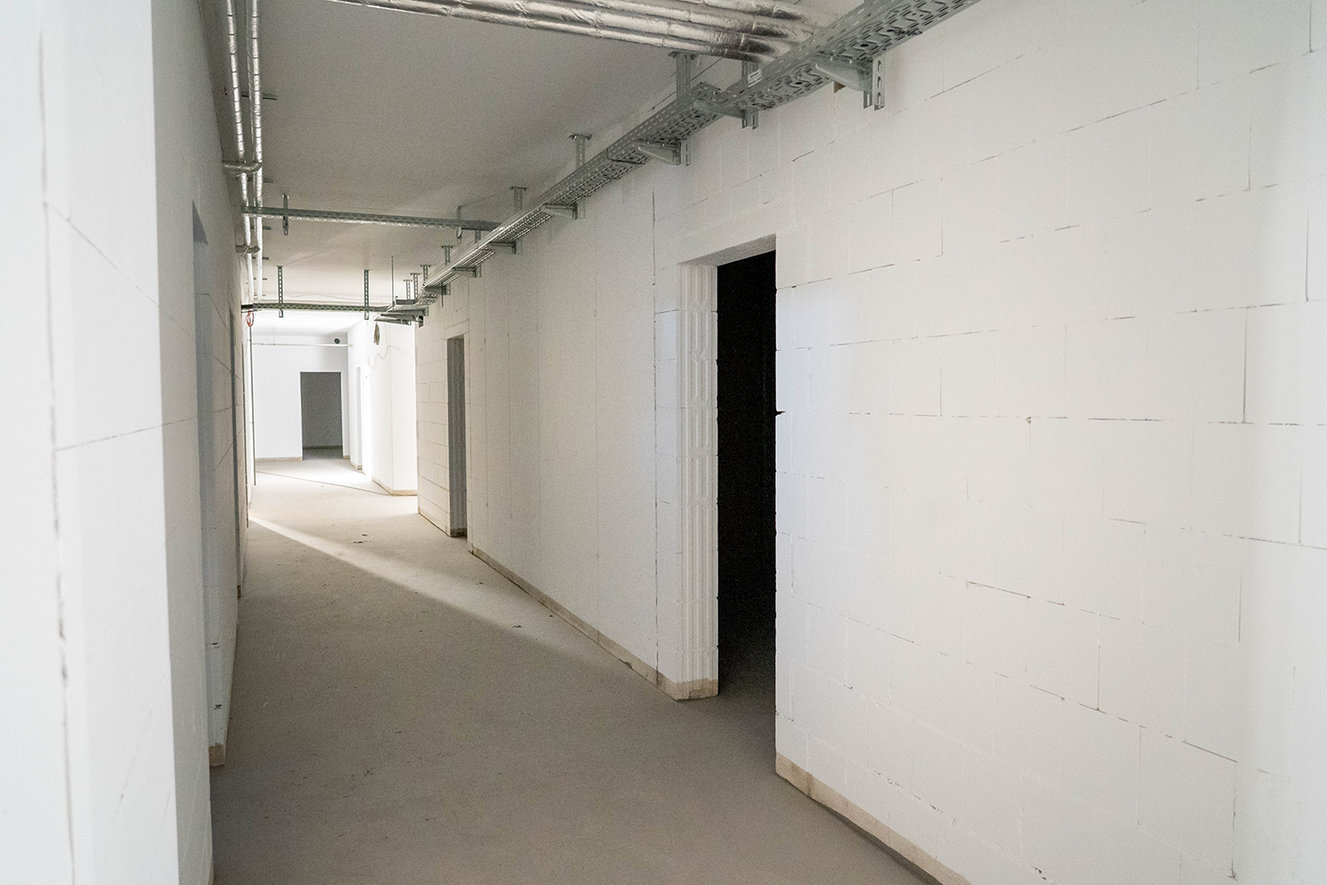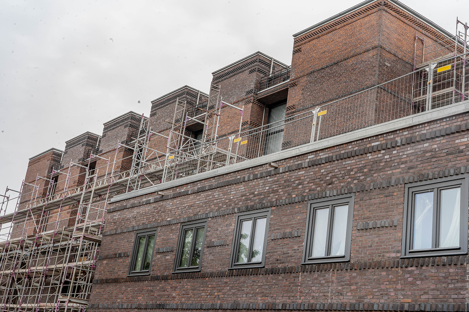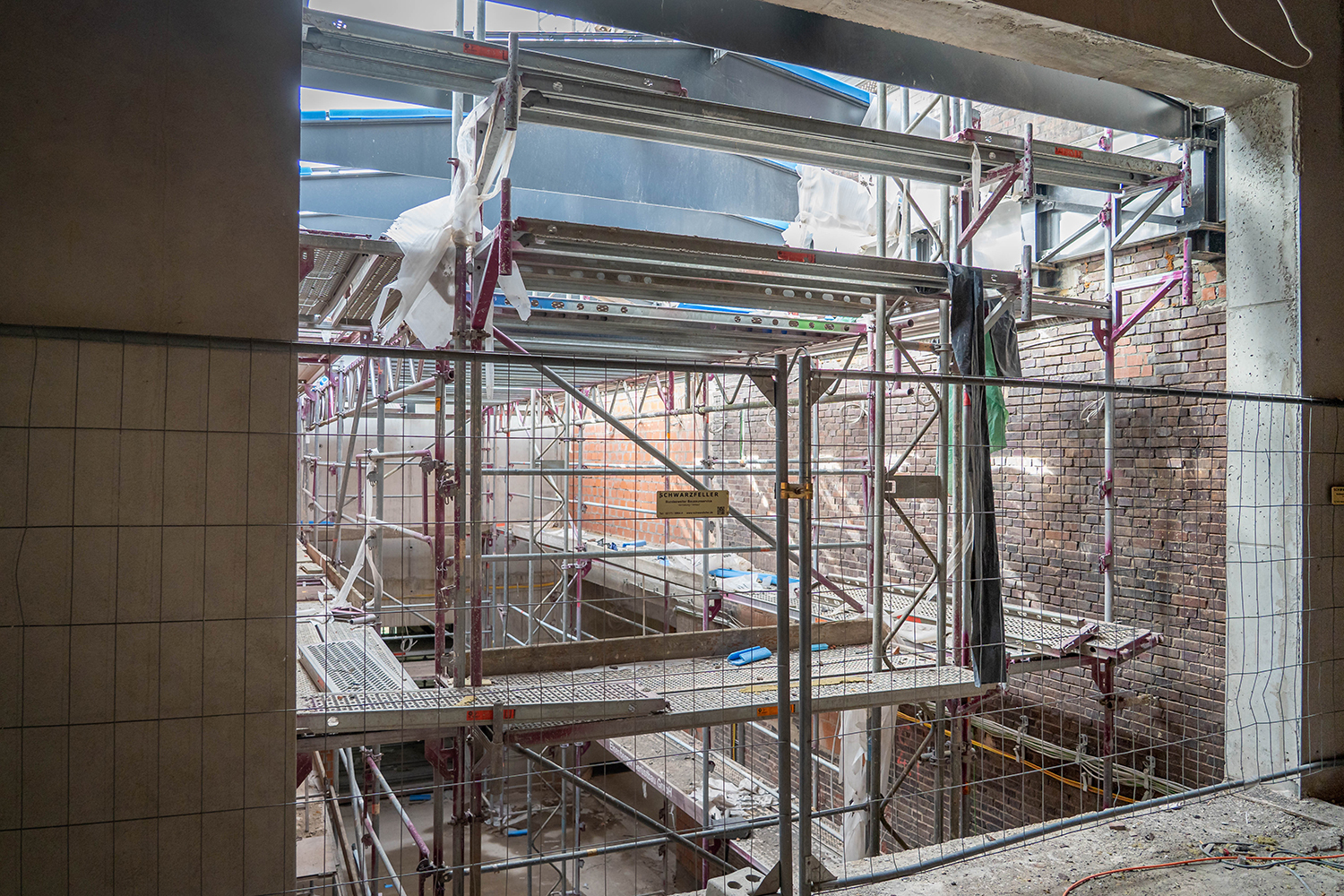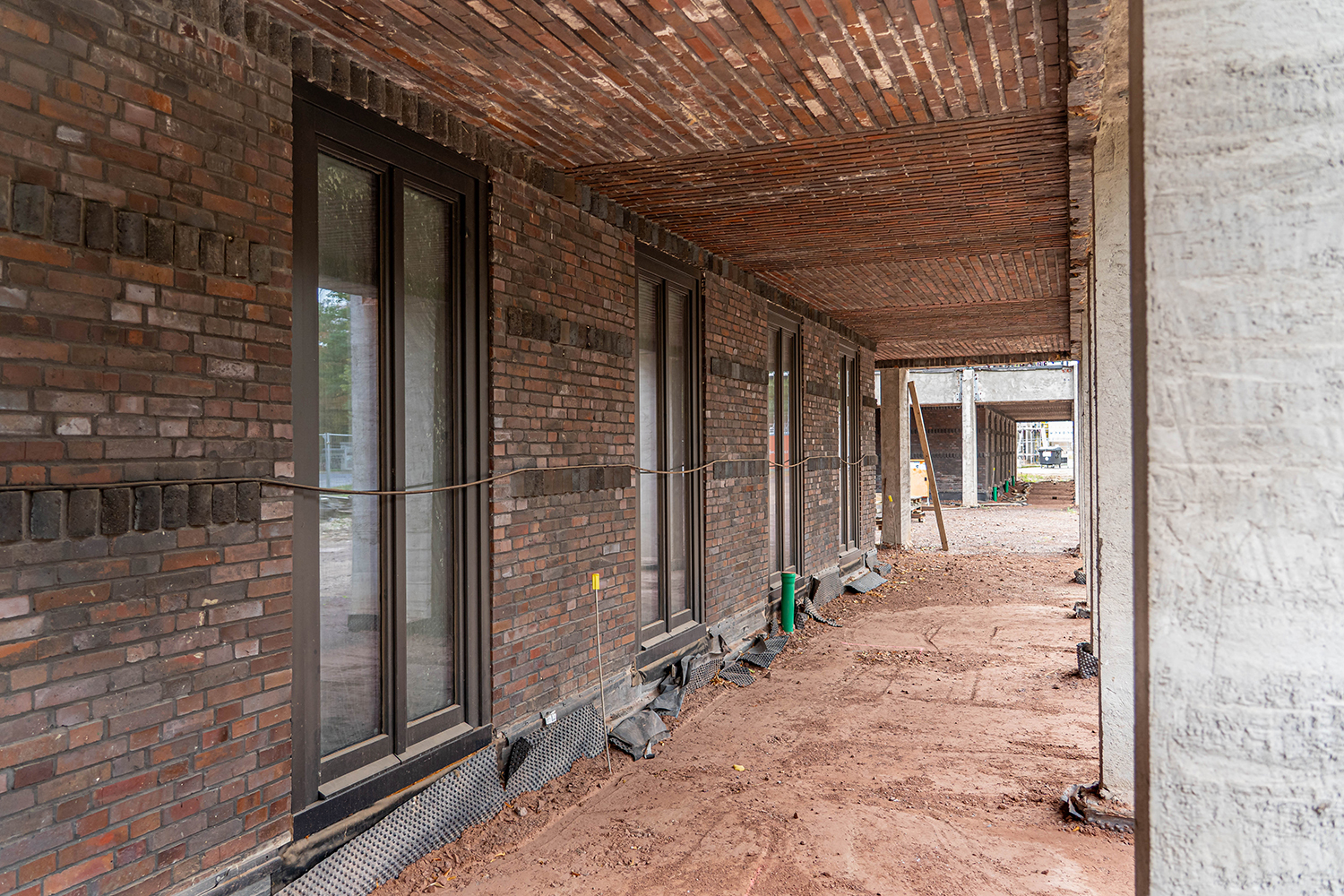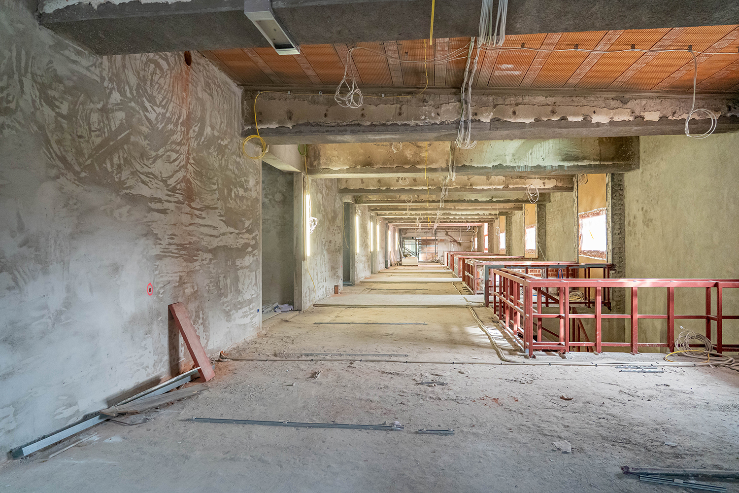 Einbau der Glaselemente für das Lichtband im Dach im März 2022