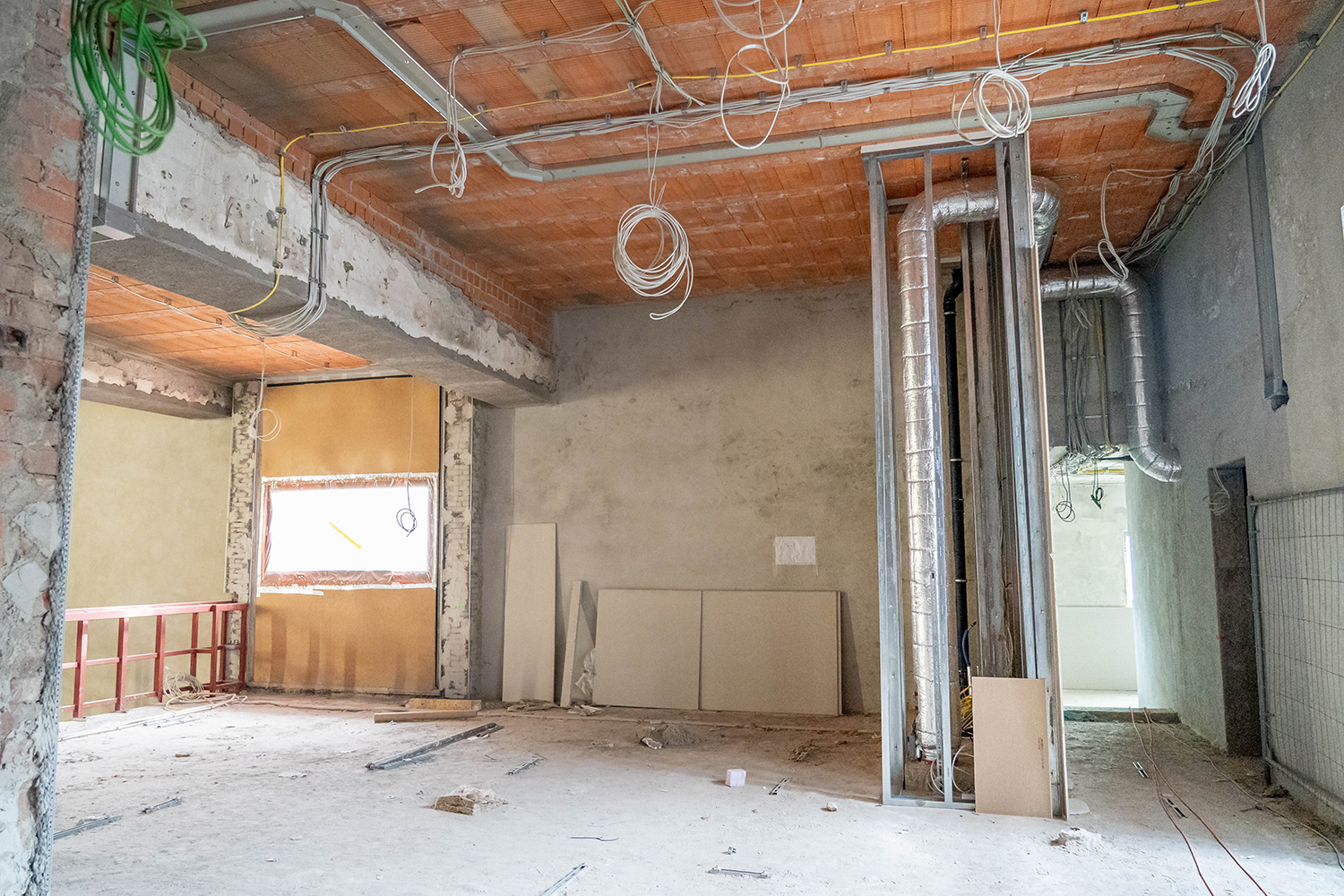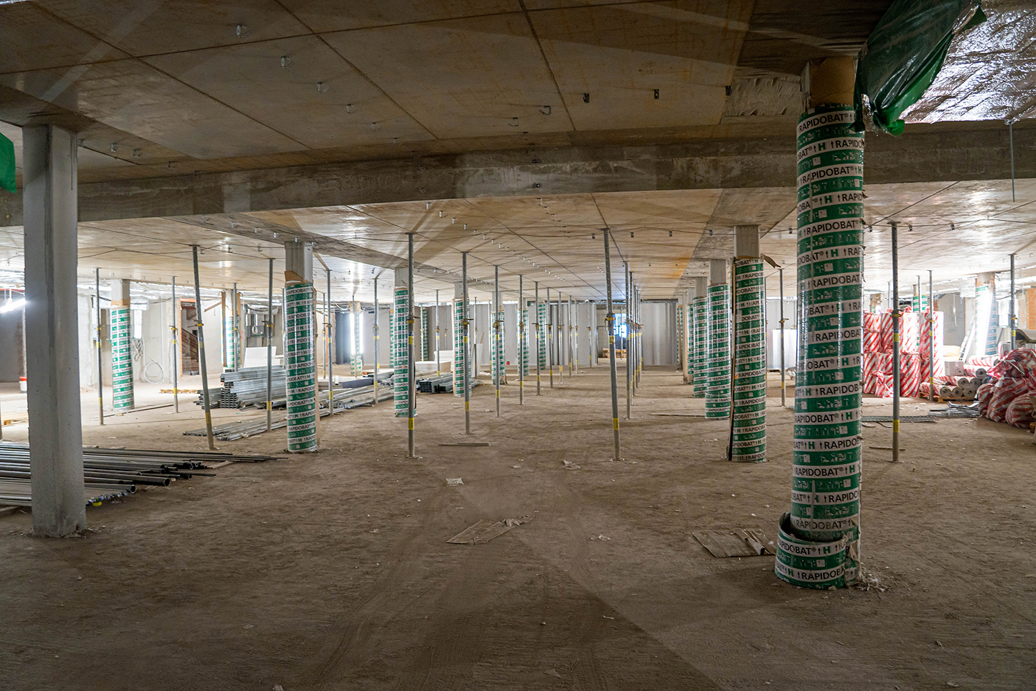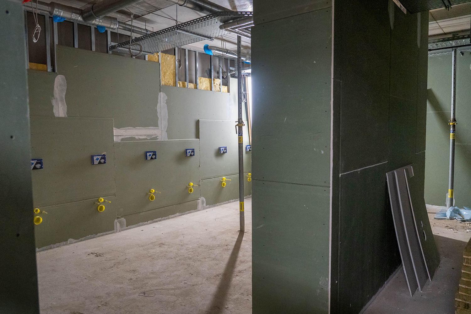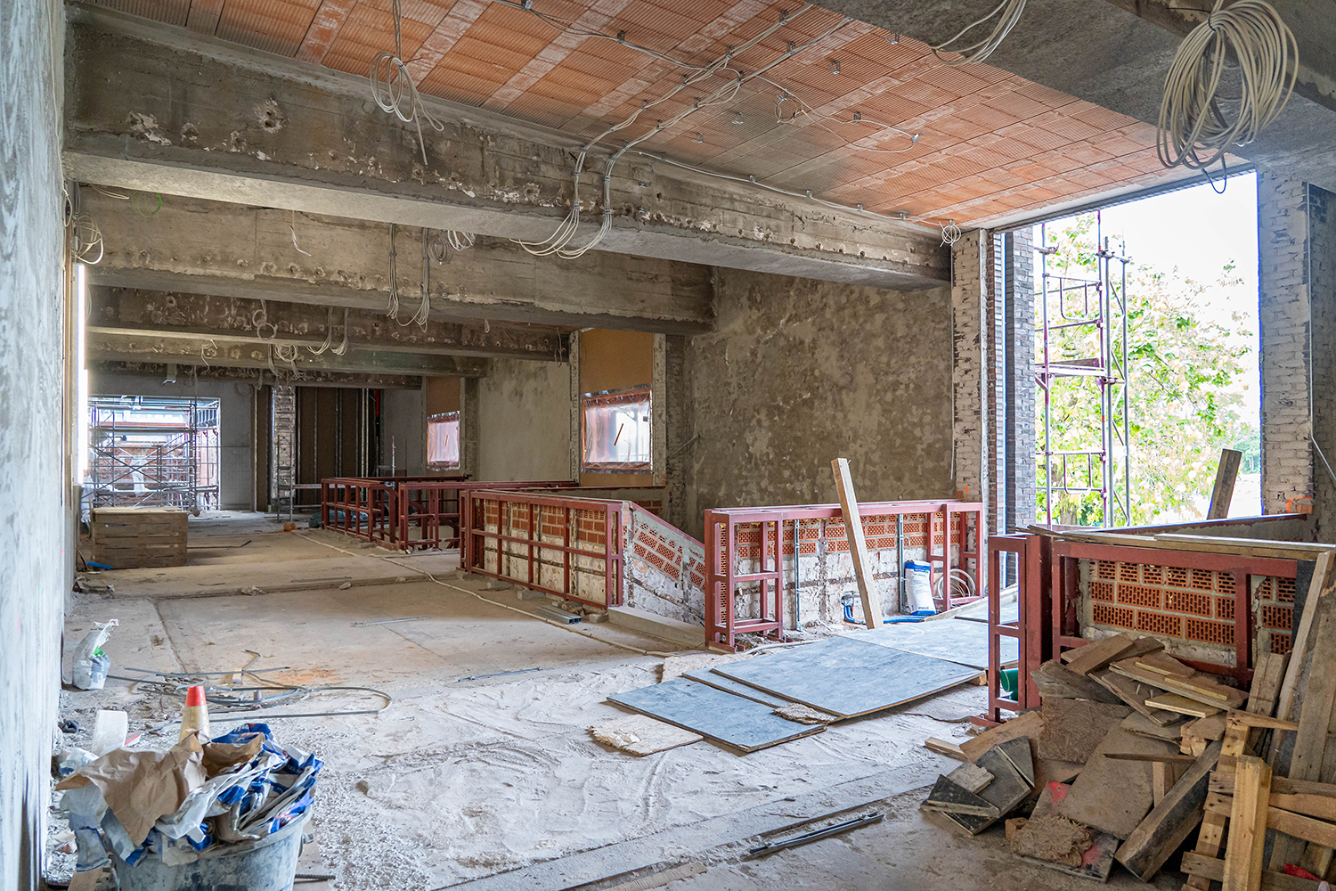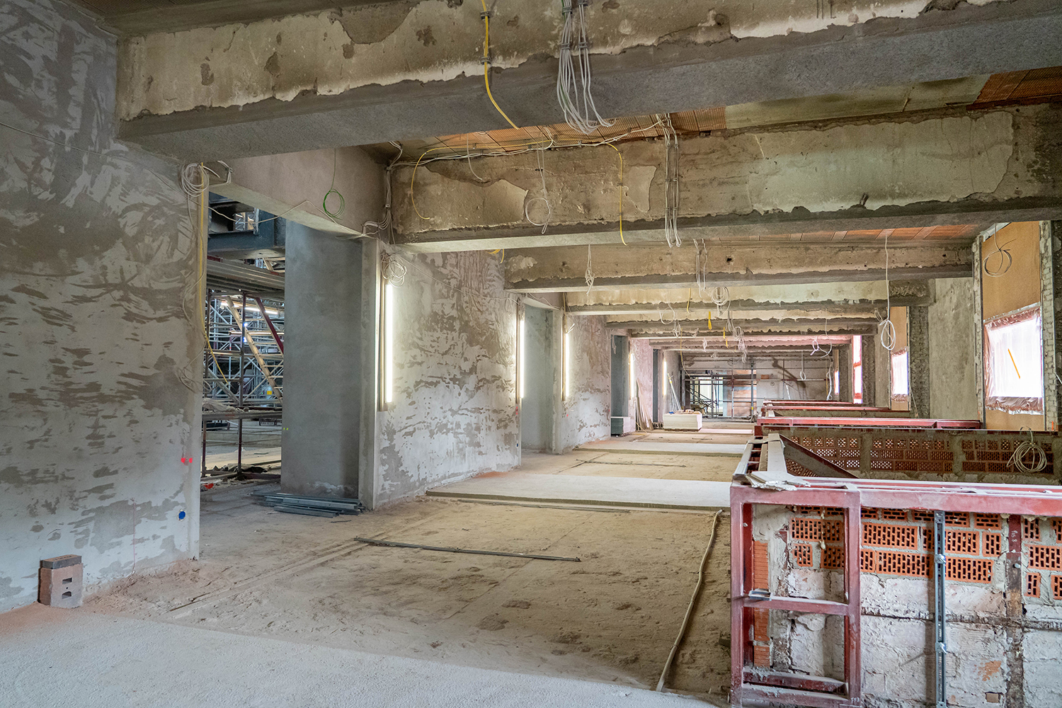 Einbau der Glaselemente für das Lichtband im Dach im März 2022