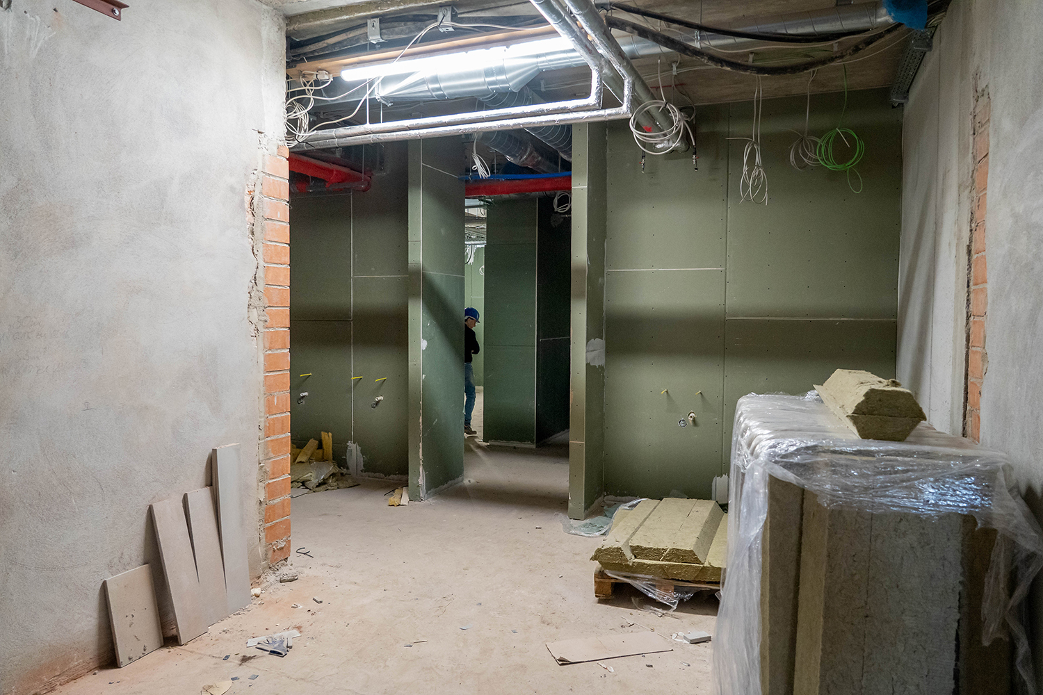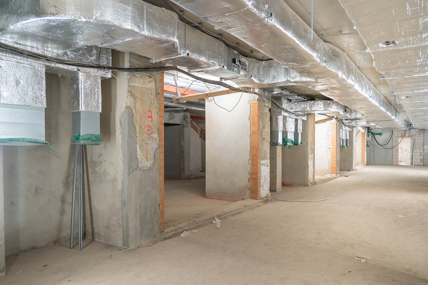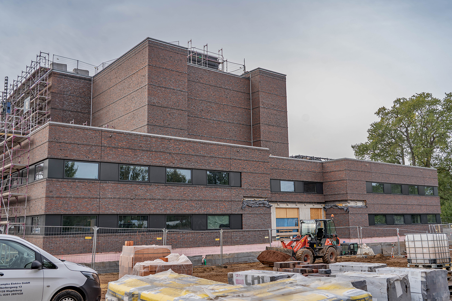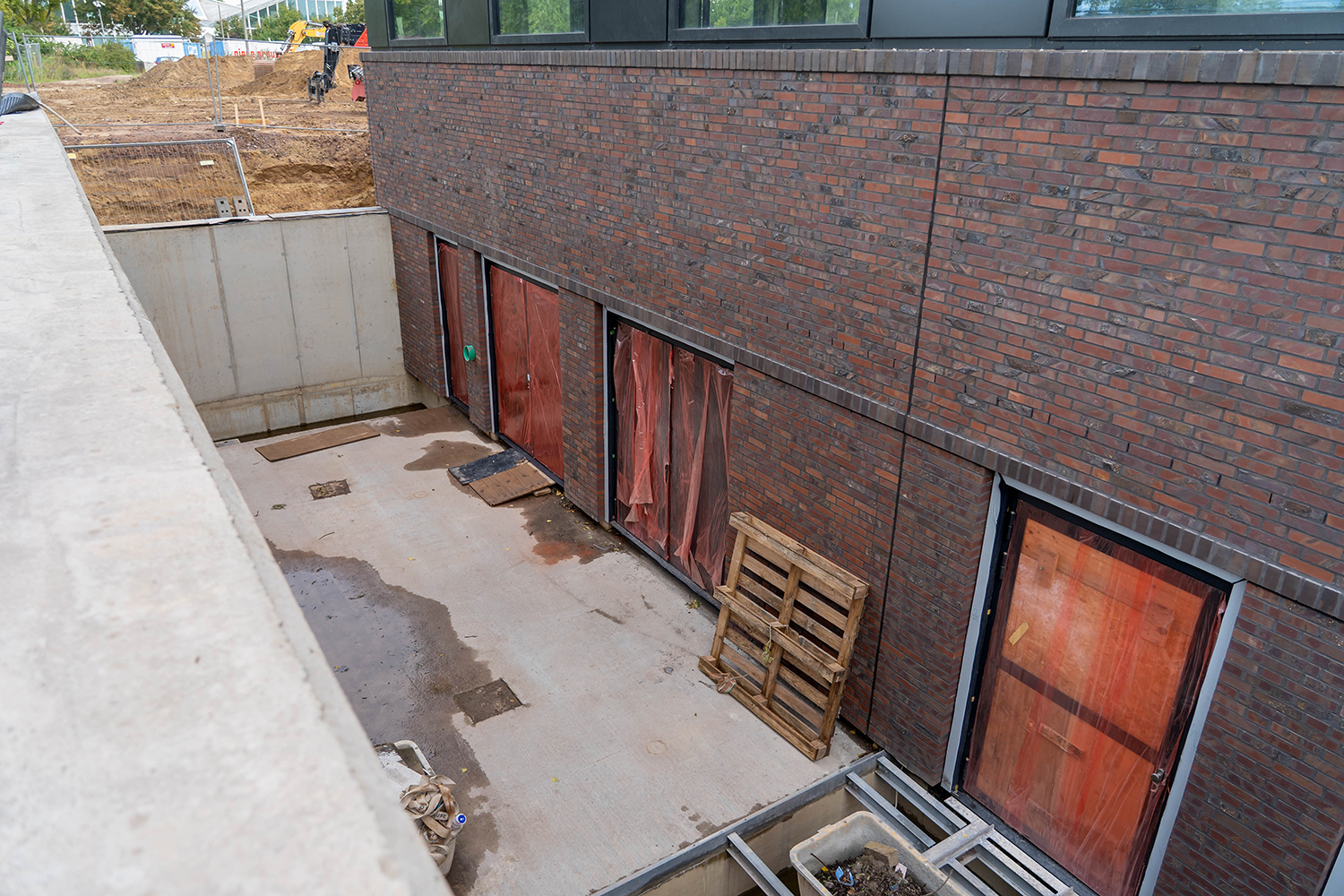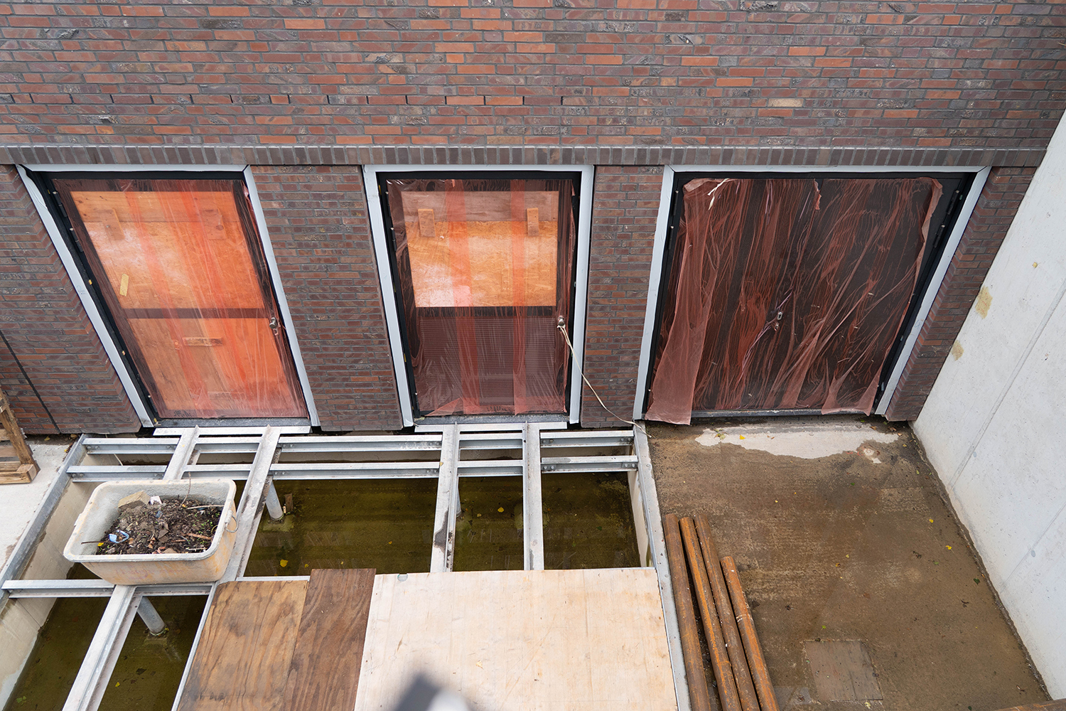 Einbau der Glaselemente für das Lichtband im Dach im März 2022